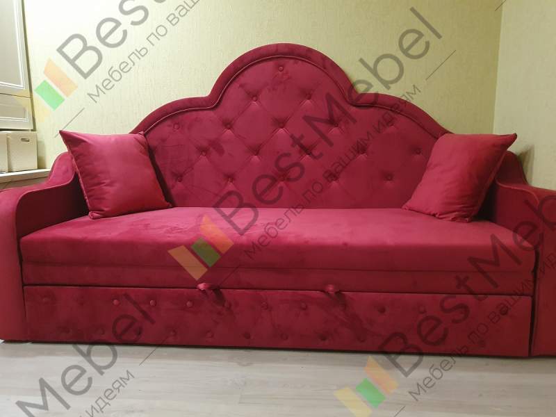 Прекрасное исполнение👍. Неожиданно, вместе с другой мебелью, заказали девочке 8ми лет, с расчетом на вырост, и остались очень довольны! Цвет ткани отдельный восторг, не красный, а красивый тёмно-розовый насышенный (велюр Италия 15). Очень рекомендую.