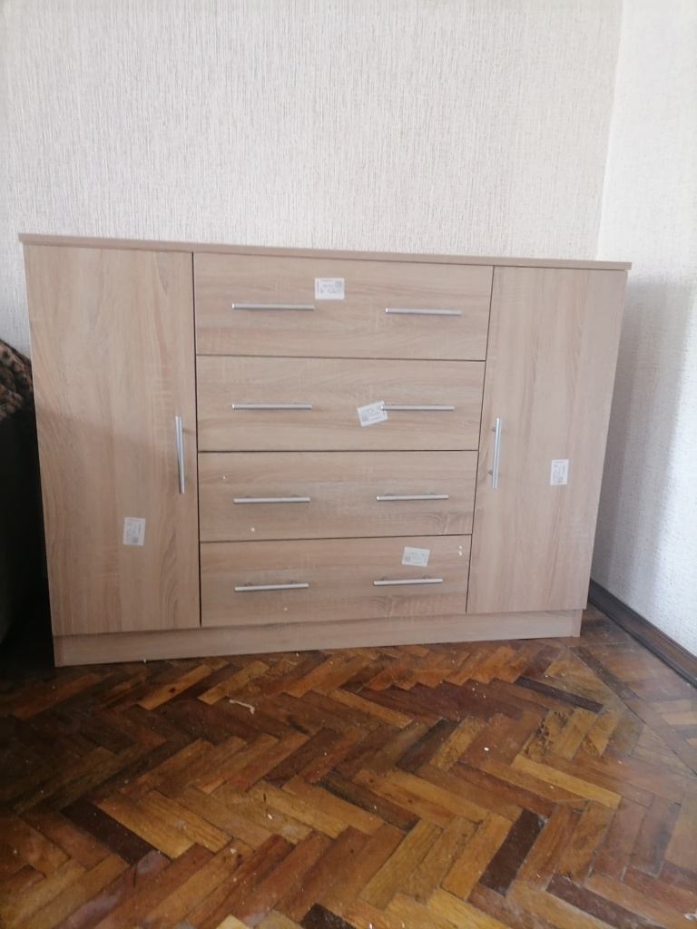 Выбирала не очень дорогой комод в столовую Удобный-сложила все мелочи, мелкую посуду, и сверху еще вместились кухонная мелкая техника. Выбирала по размеру и цвету, всё подошло идеально. Ящики выдвигаются хорошо. Запаха нет, дверцы не скрипят, поверхность приятная на ощупь.Всё устроило, довольна. Сборку заказывала, всё сделали быстро и аккуратно.