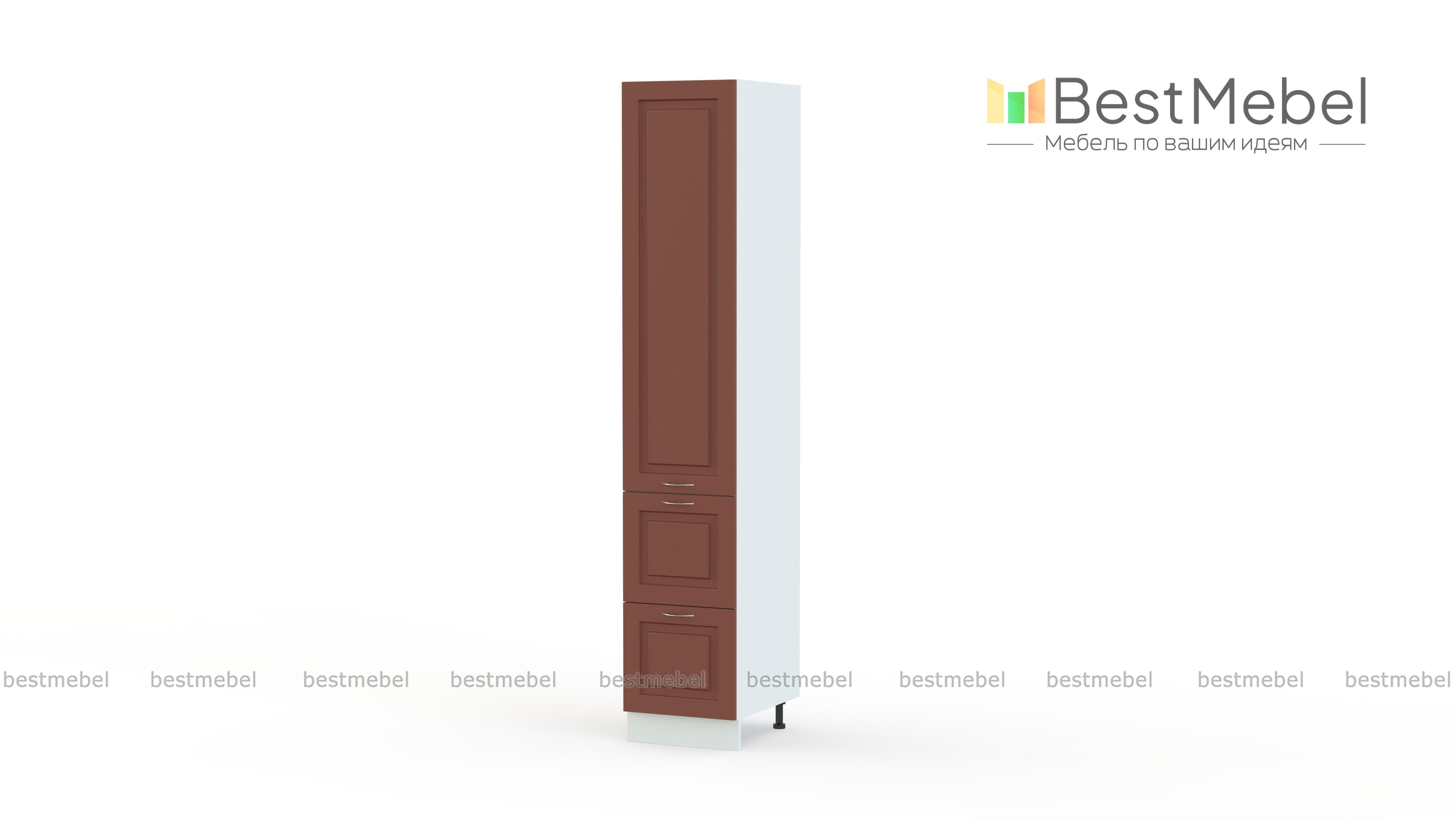 Пенал Гарда с ящиками BMS – практичная система хранения и интересный акцент в интерьере современной кухни. Высокий пенал оборудован двумя глубокими выдвижными ящиками в основании и распашным отделением с полками, в которых смогут разместиться посуда для готовки, продуктовые запасы, а также разнообразные кухонные аксессуары. Фрезерованные фасады с имитацией текстуры камня дополнены лаконичными хромированными ручками-скобами. Купить пенал Гарда с ящиками BMS приглашаем недорого в наш интернет-магазин.
