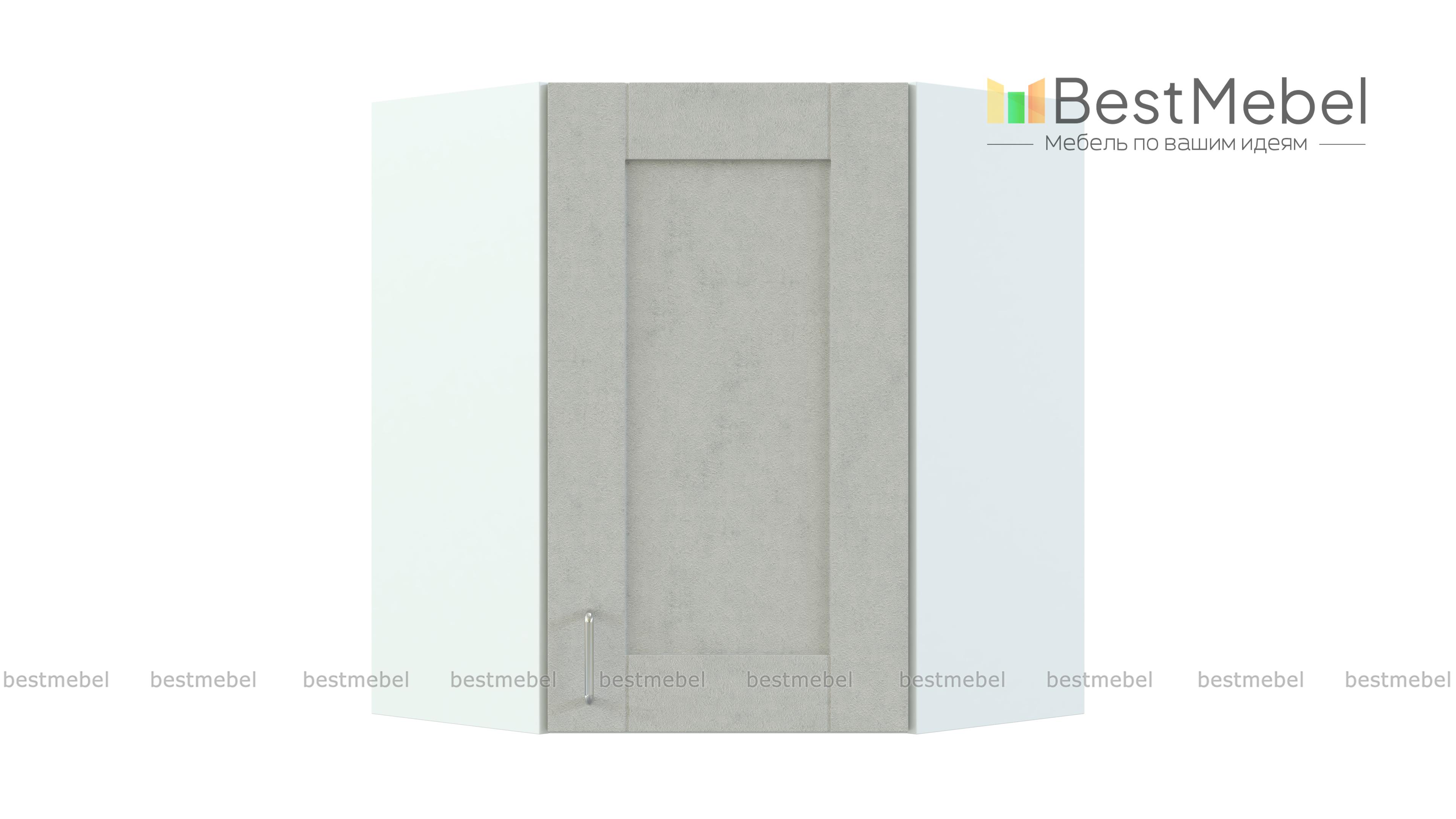 Шкаф верхний угловой Лофт BMS – незаменимый элемент в Г-образном кухонном гарнитуре. Шкаф в форме трапеции отличается простотой конструкции, надежностью, и выгодно использует доступное пространство. За распашной дверцей – просторное отделение с полкой для продуктов, посуды и разнообразных кухонных принадлежностей. Фасад темных графитовых тонов дополнен корпусом контрастного цвета и гармонично впишется в современные интерьеры. Купить шкаф верхний угловой Лофт BMS приглашаем по лучшей цене в наш интернет-магазин.