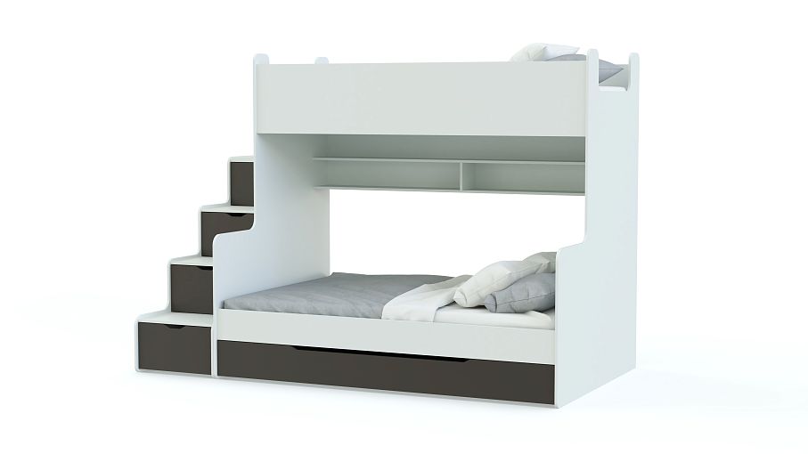 Детская двухъярусная кровать Д-3 BMS подойдет детям и подросткам благодаря простому и функциональному дизайну в современном стиле. Изготовленная из экологичной ламинированной плиты, композиция включает в себя кровать с бельевым ящиком и полкой для книг и приставную лестницу-стеллаж, оснащенную четырьмя ящиками для игрушек или одежды. Все углы кровати безопасно скруглены, а ящики оборудованы удобными для детей вырезными ручками. Купить детскую двухъярусную кровать Д-3 BMS приглашаем в наш интернет-магазин с выбором цвета и размеров.
