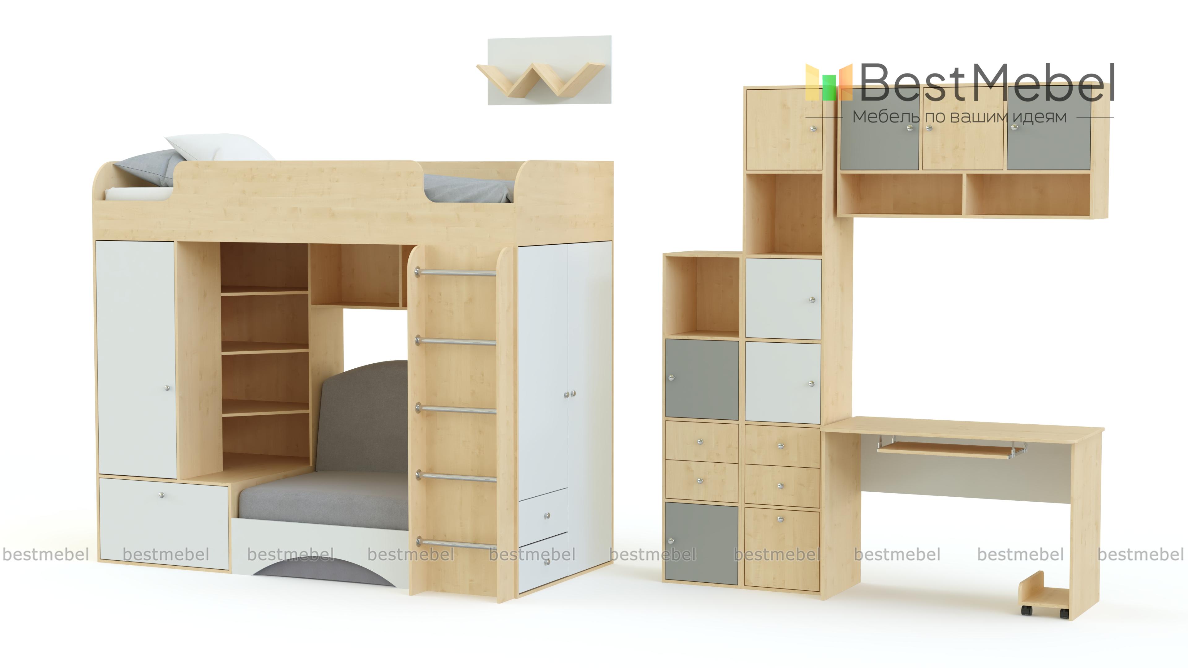 Детская мебель Тетрис-1 модульная BMS порадует детей и родителей ярким современным дизайном, функциональностью и оригинальной конструкцией, которая позволит организовать удобное для учебы и досуга пространство. В комплекте многофункциональный модуль с кроватью-чердаком, диванным блоком, встроенными шкафами и открытыми полками, письменный стол, стеллаж и навесные полки. Цветовое решение – светлые тона с цветными вставками, оптимально для детских комнат. Купить детскую мебель Тетрис-1 модульную BMS вы сможете в нашем интернет-магазине по отличной цене.