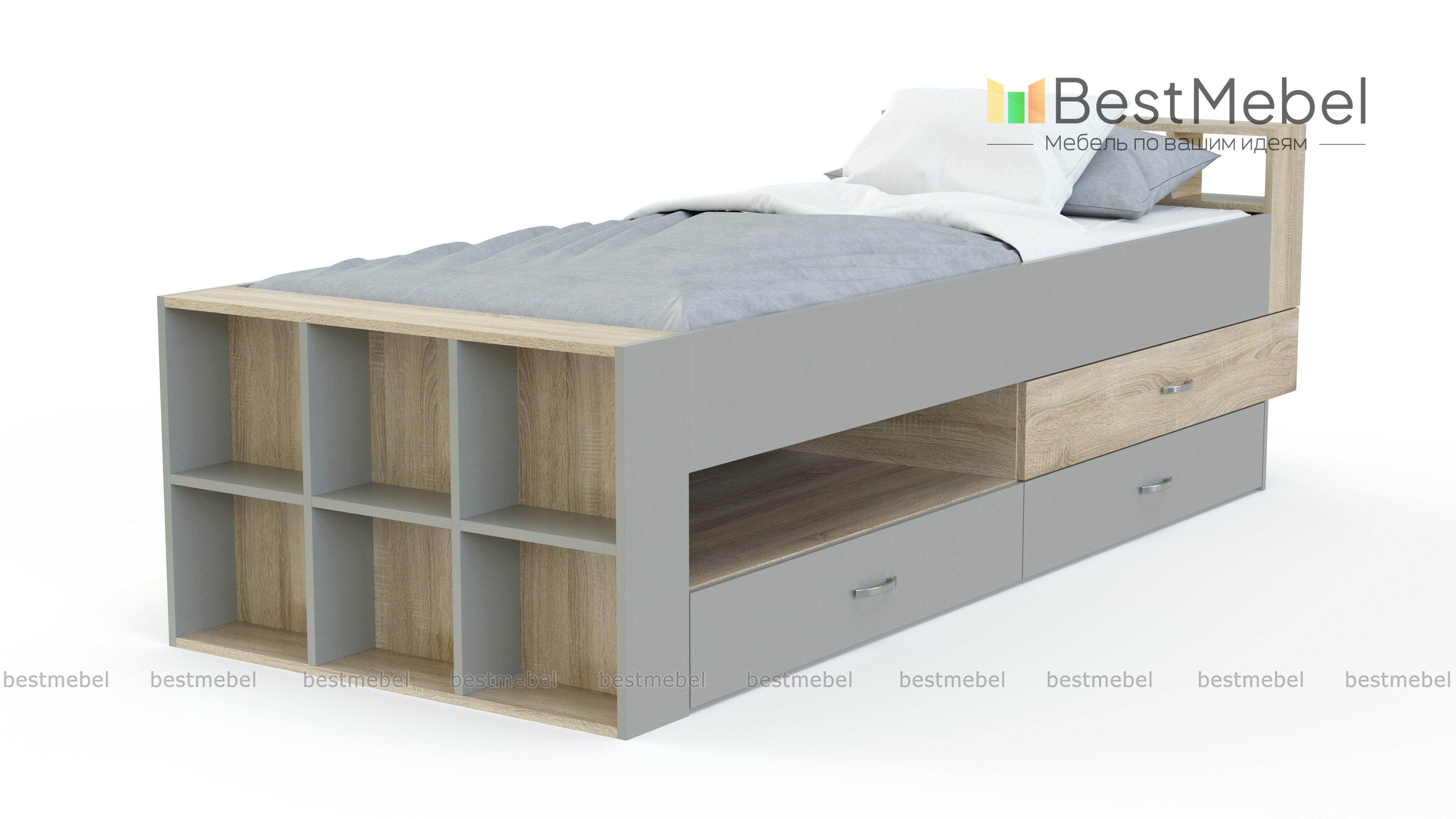 Кровать детская Снуп BMS – многофункциональная модель для интерьера детских и молодежных комнат. Практичная конструкция представляет собой комбинацию комфортного спального места, высокого основания с выдвижными ящиками, нишей и торцевыми открытыми полками и спинки изголовья в виде мини-стеллажа. Объединившая зону отдыха и удобную систему хранения, кровать позволит разместить постельное белье, игрушки, книги, принадлежности для школы и творчества и множество мелочей. В оформлении использованы светлые древесные тона и белые вставки. Купить кровать детскую Снуп BMS приглашаем в наш интернет-магазин.