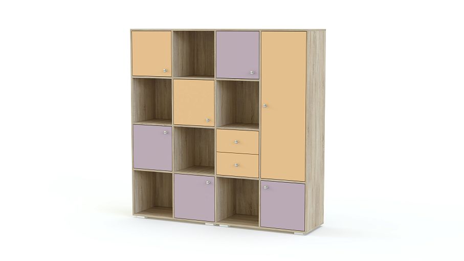 Стеллаж Джери 2 BMS отличается крупными габаритами и редкой вместительностью. Современная модель поможет обустроить яркую и комфортную детскую, компактно разместив вещи ребенка – от одежды до игрушек. Конструкция представляет собой комбинацию просторных открытых полок, распашных отделений и шкафчика с выдвижной штангой. Выполненный в светлых тонах под массив дерева, стеллаж с цветными фасадами гармонично впишется в меблировку благодаря возможности подбора оттенков. Купить стеллаж Джери 2 BMS по лучшей цене приглашаем в наш интернет-магазин.