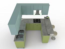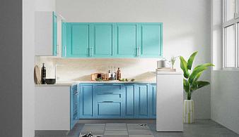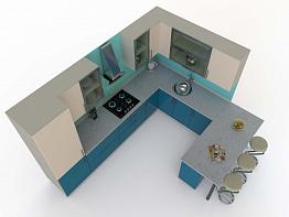 Угловая кухня с барной стойкой Лазурь BMS