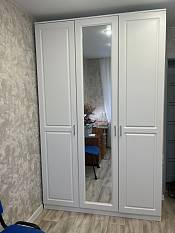 Заказ 00000204262, изделие ЭСКИЗ №00000204262 Распашной шкаф Лимбо 8 BMS (1500х2400х550) (Белье - Платье - Белье (4 ящика) (3)) Шкаф очень понравился. Выглядит легко, совсем не громоздко. Вписался в интерьер комнаты. Вместительный. Внутренности были изготовлены по моему образцу. Сроки поставки были согласованы. Привезли полный комплект, без сколов, вмятин и т.д. Собрали без проблем. Покупкой очень довольна