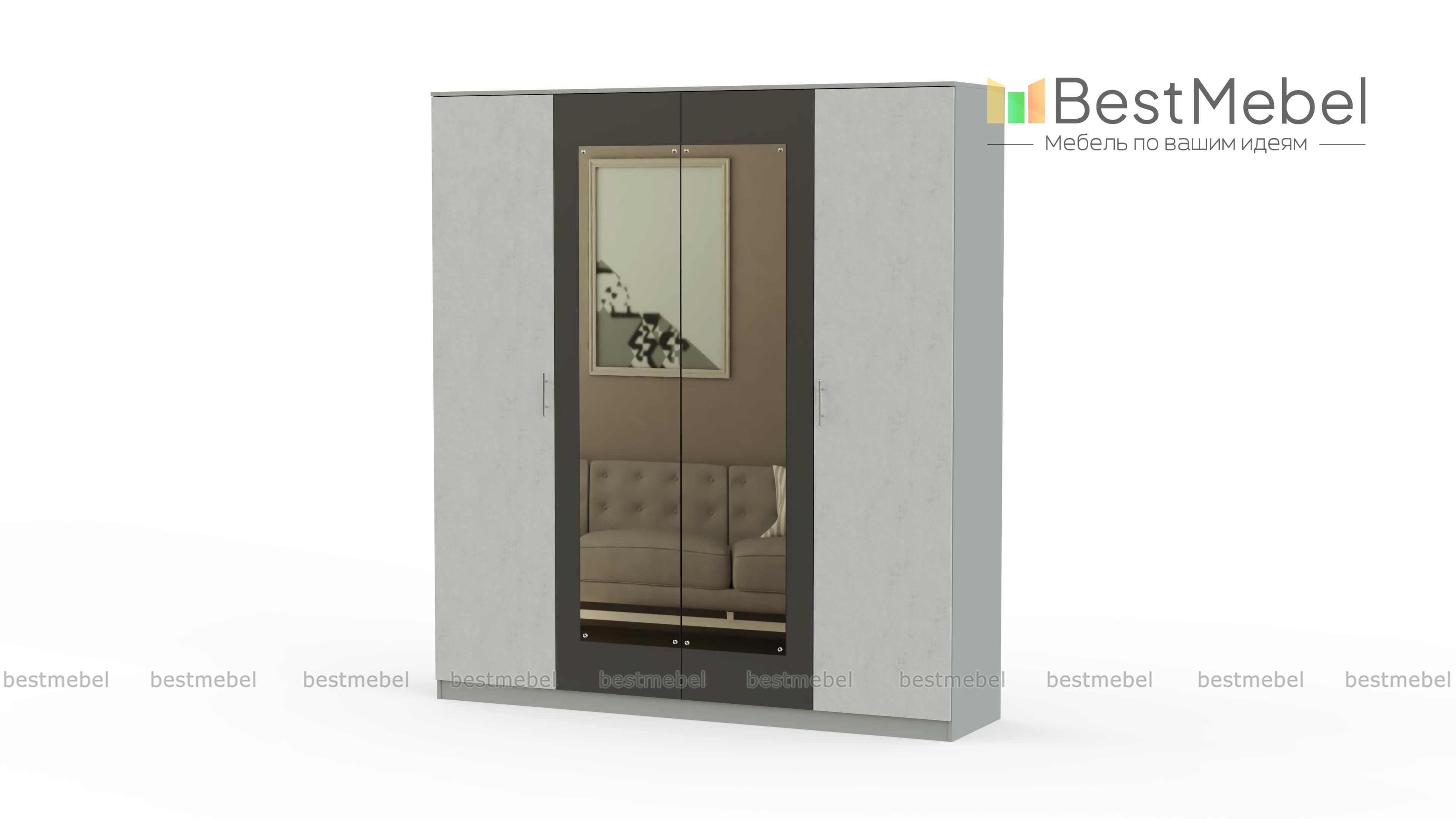 Распашной шкаф Варна 1 BMS с геометричным декором фасада станет центральным элементом дизайна современной спальни. Белоснежная вставка с зеркальными полотнами эффектно смотрится на фоне фасада в темных тонах. Четырехдверный шкаф с просторными внутренними отделениями легко решит проблему хранения гардероба и поможет легко поддерживать дома порядок. Купить распашной шкаф Варна 1 BMS с возможностью изменения цвета и размеров приглашаем в наш интернет-магазин.