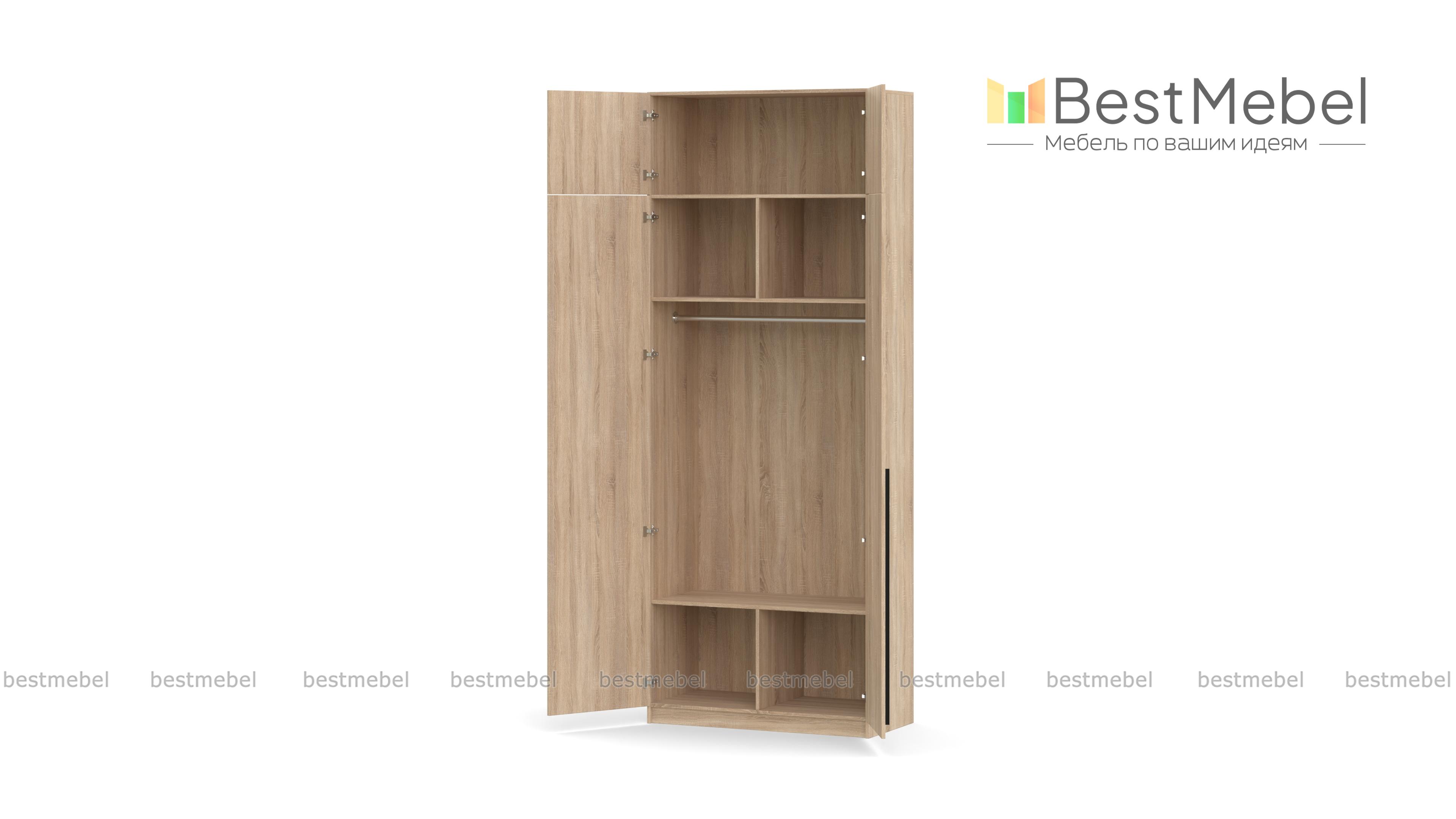 Шкаф распашной Айва 11 BMS выгодно использует помещение в высоту за счет антресоли. Практичным дополнением к основному отделению, оборудованному двумя полками с перегородками и платяной штангой, станет просторная верхняя секция для объемных и редко используемых вещей. Минималистичный дизайн делает шкаф универсальным, а индивидуальности добавляют акцентные контрастные ручки. Купить шкаф распашной Айва 11 BMS, изготовленный по вашим размерам, приглашаем к нам в интернет-магазин.