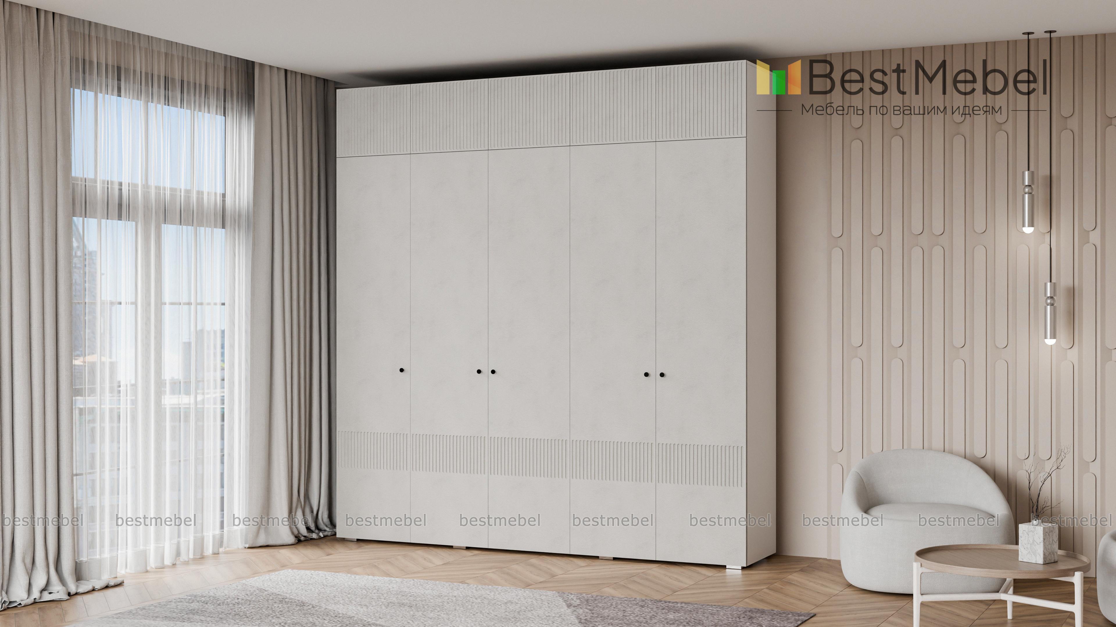 Шкаф распашной Джосс 11 BMS с антресолью — практичное и эстетическое решение для вашего дома. Пространство будет занято до потолка — значит, появится больше места для хранения как повседневного, так и сезонного гардероба. Внутри пятидверного шкафа располагаются две штанги и ряд бельевых полок, а сплошной фасад яркого аквамаринового цвета декорирован стильным рельефом. Купить шкаф распашной Джосс 11 BMS вы сможете на сайте нашего интернет-магазина в необходимом размере и любых оттенках из каталога.