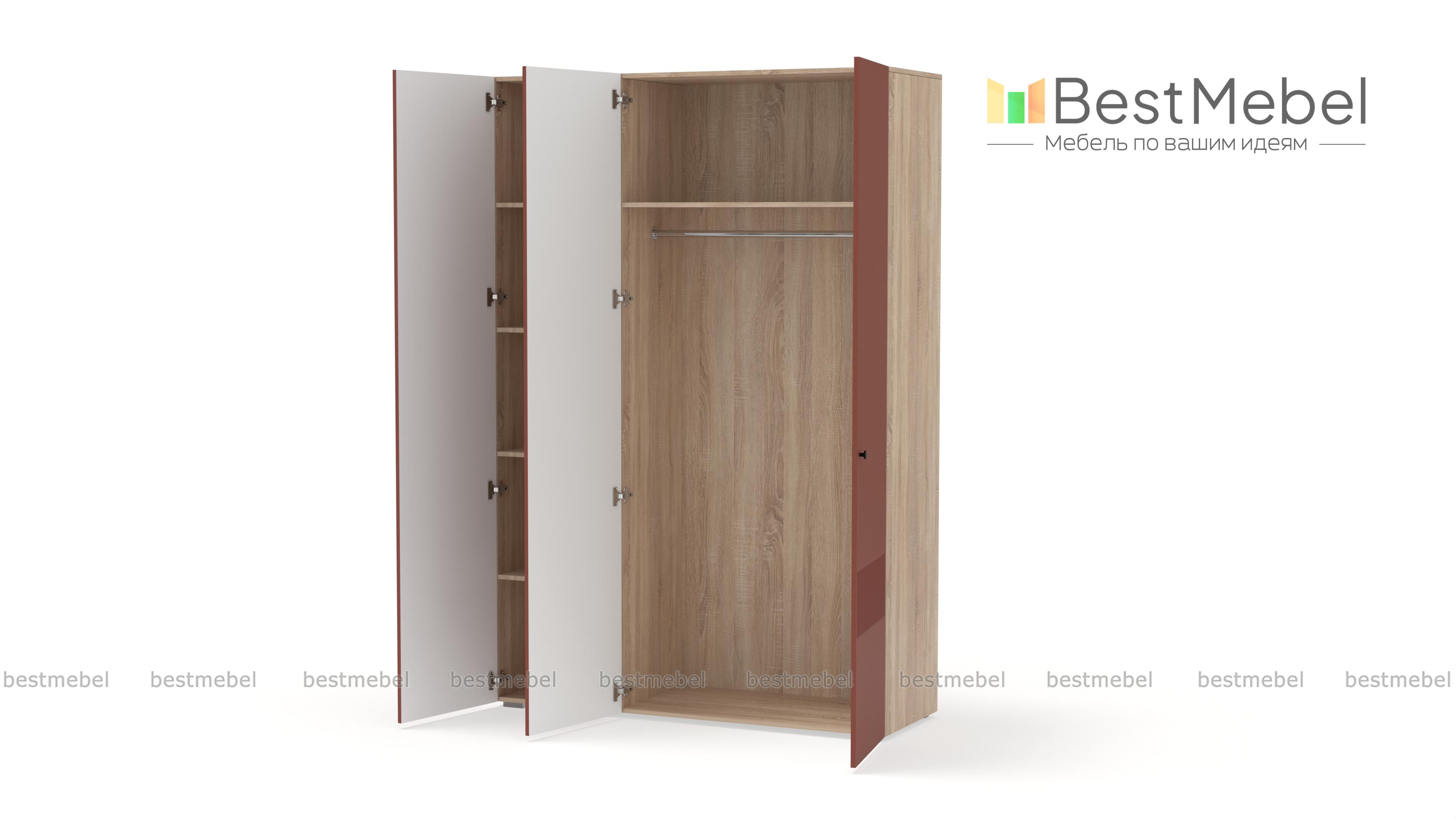 Шкаф распашной Джосс 3 BMS — компактный и стильный в двух актуальных оттенках. В отделке сплошного фасада, выполненного из устойчивой к повреждениям МДФ, использован оригинальный рельеф, дверцы легко открываются с помощью маленьких круглых ручек. Для разных вариантов хранения в трехдверной модели предусмотрены как штанга, так и секция с полками. Купить шкаф распашной Джосс 3 BMS с выбором размеров, цвета и фурнитуры вы сможете в нашем интернет-магазине.