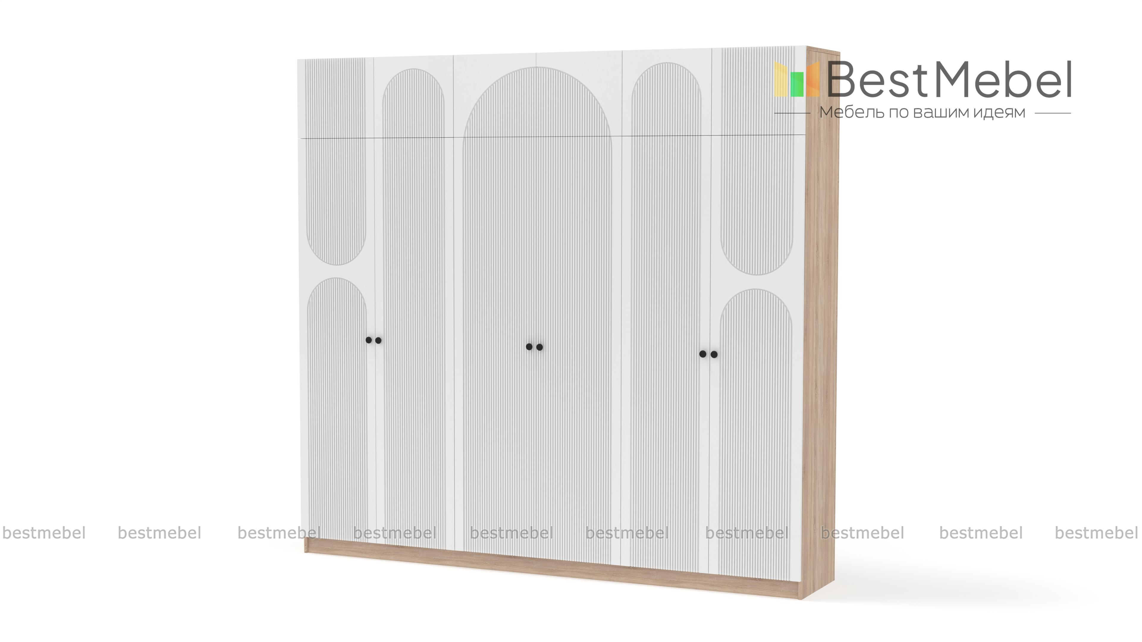 Шкаф распашной Рене 32 BMS с антресолью предоставляет еще больше места для хранения ваших вещей. Дополнительные секции сверху позволяют разместить в этом шестидверном шкафу как одежду и обувь, так и объемные постельные принадлежности. Светлые тона скрадывают габариты модели, а фрезеровка и арочные вырезы на фасадах добавляют легкости. Купить шкаф распашной Рене 32 BMS вы сможете на сайте нашего интернет-магазина в нужном размере и любых оттенках из каталога.