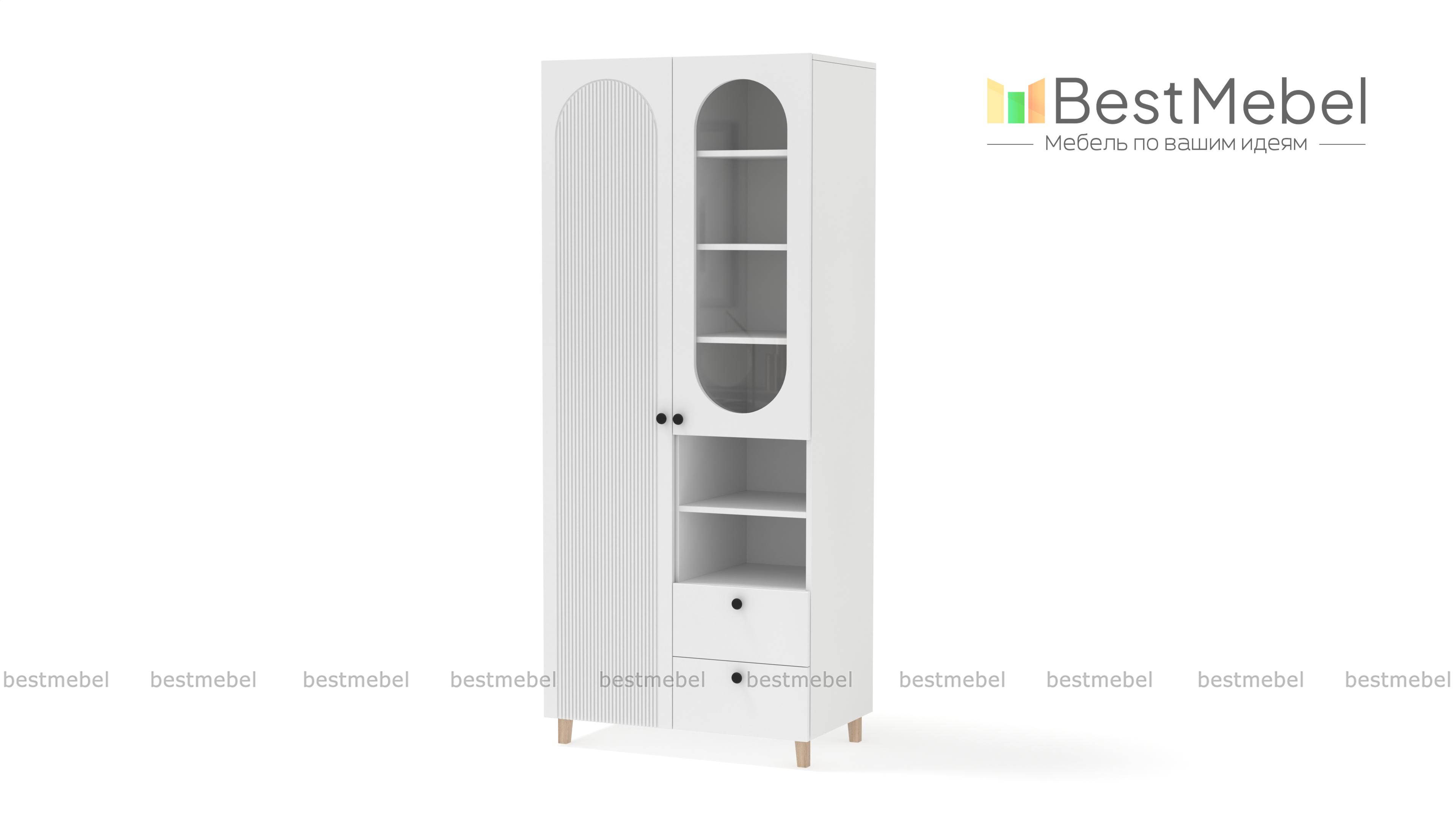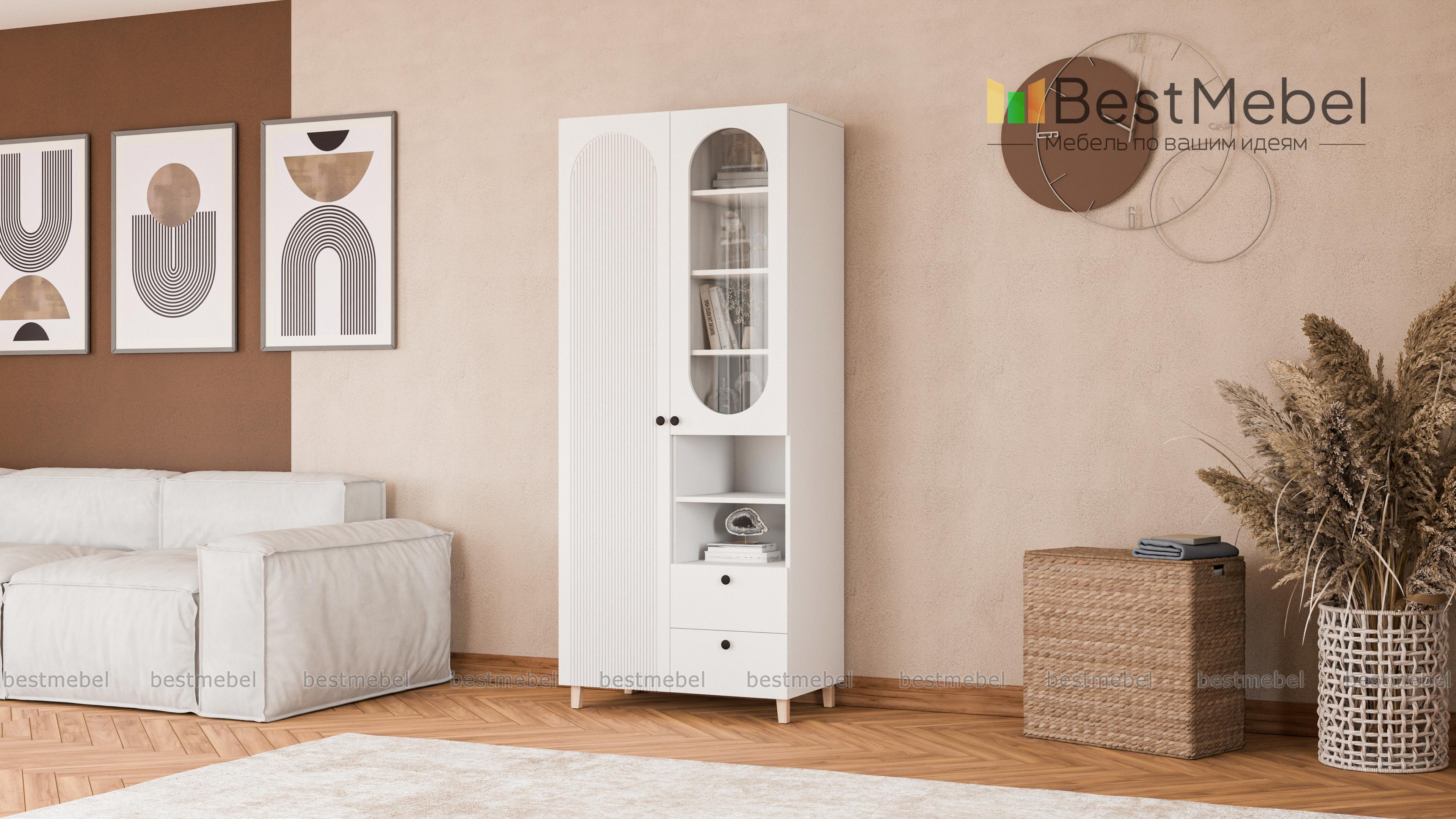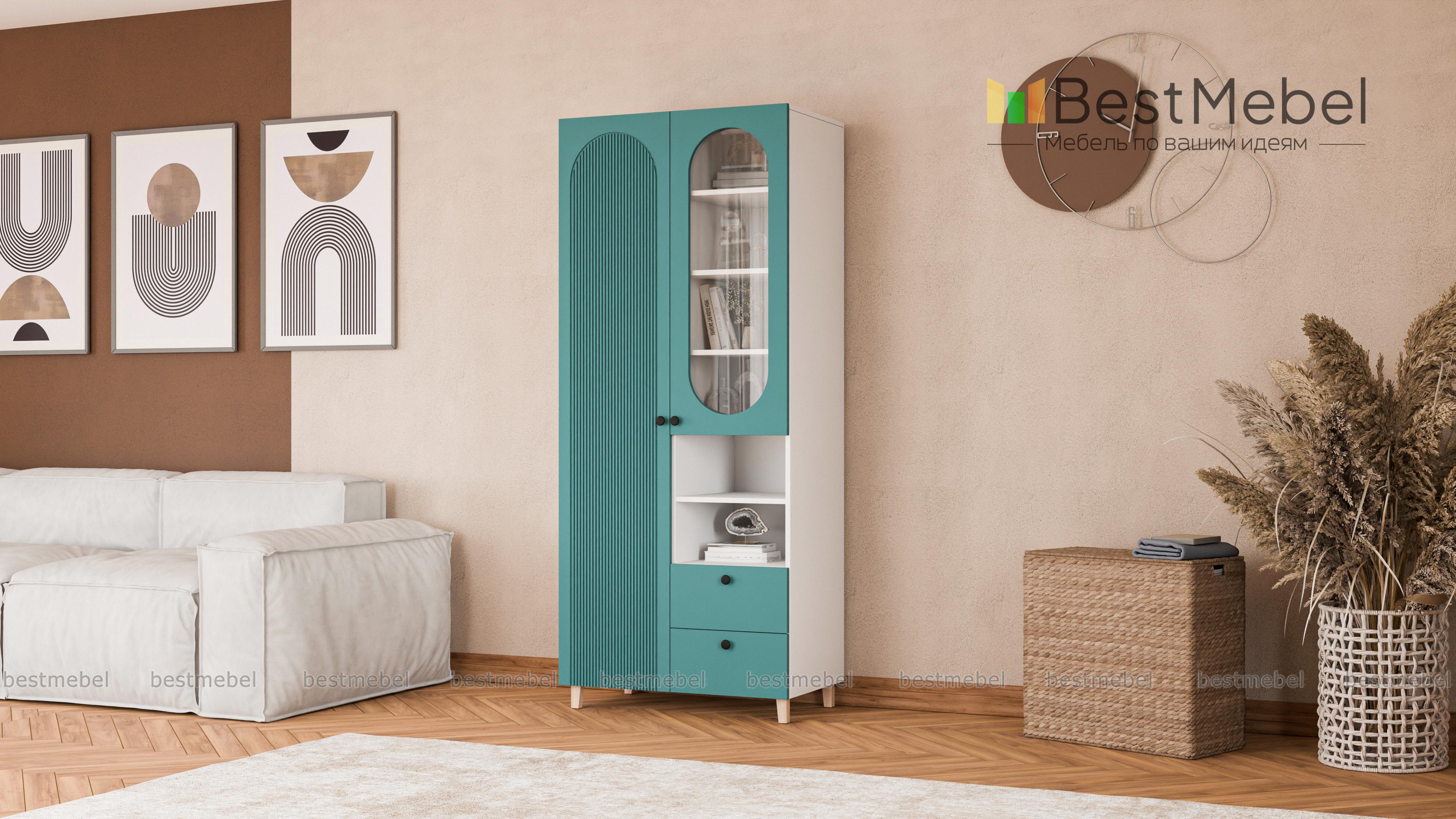 Шкаф распашной Рене 5 BMS станет не только местом хранения вещей, но и элементом дизайна современного дома. Конструкция шкафа хорошо продумана: закрытое отделение для одежды слева дополнено расположенными справа полками, ящиками и витриной. Внешне легкий благодаря высоким ножкам, шкаф со стильным темным оформлением фасада украшен овальным вырезом и фрезеровкой. Купить шкаф распашной Рене 5 BMS вы сможете в нашем интернет-магазине с индивидуальным подбором цвета и габаритов.