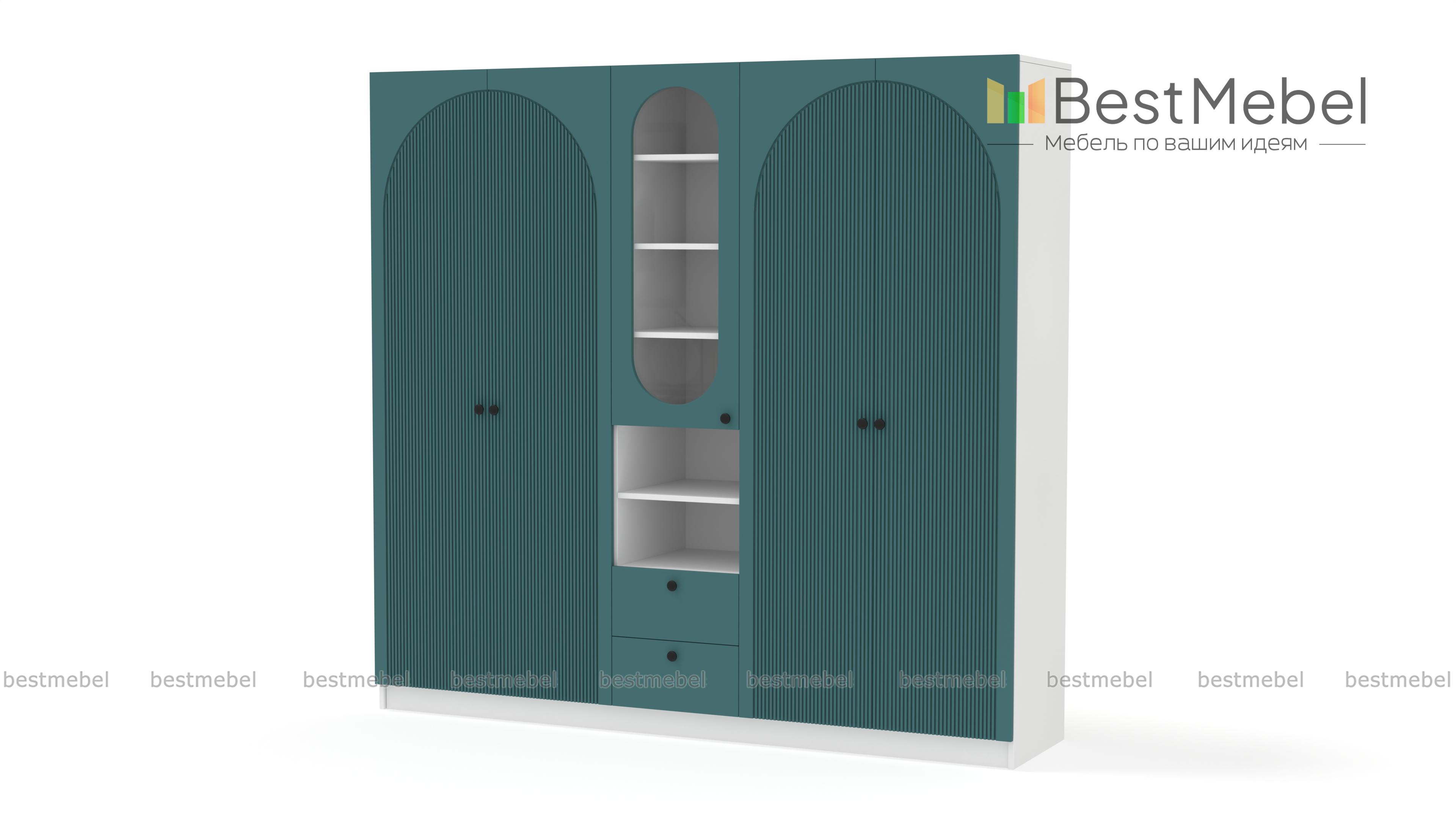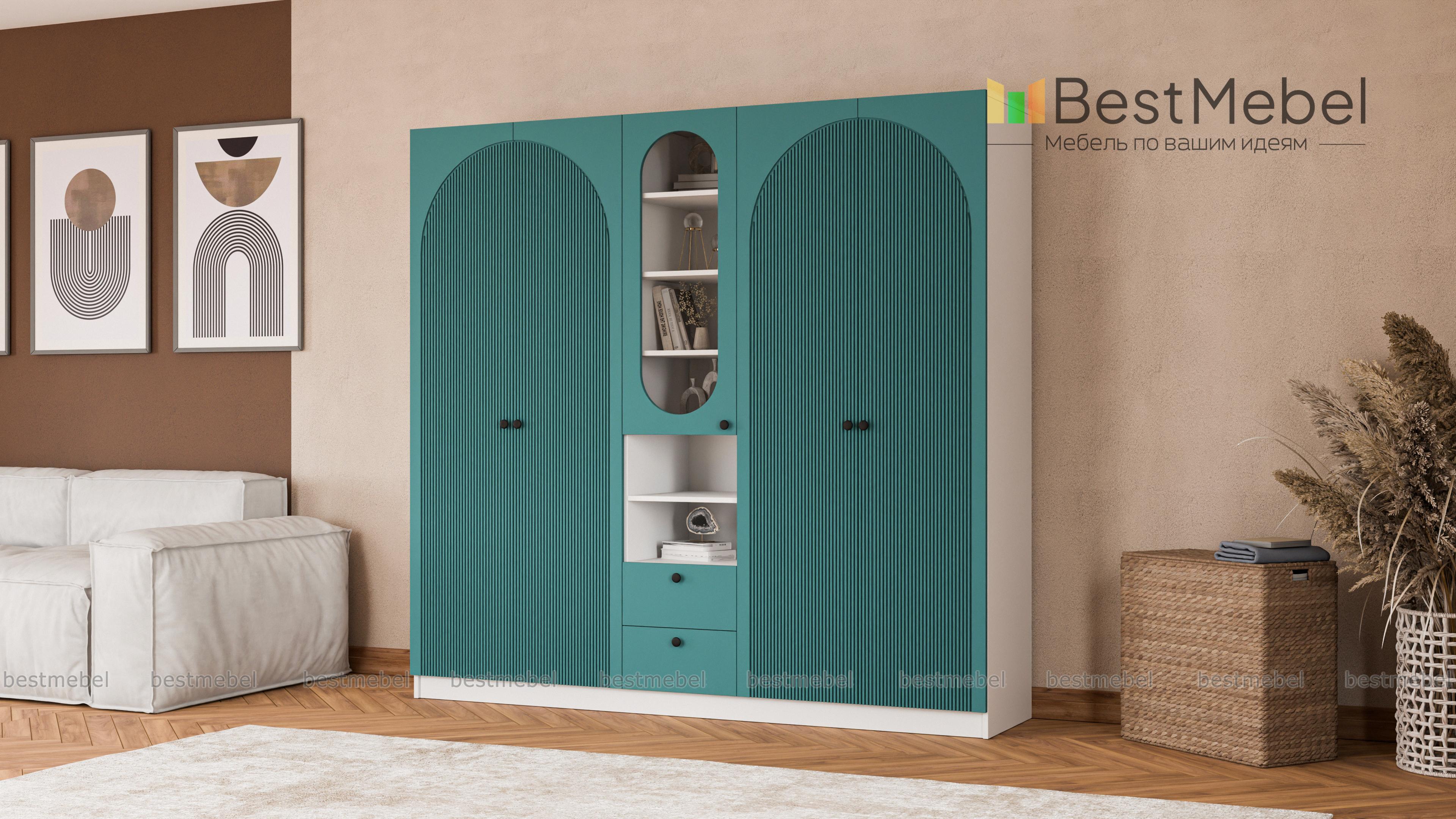 Шкаф распашной Вивьен 25 BMS — это два платяных отделения, витрина под книги и посуду, открытые полки и ящики для мелочей. Вместительная комбинированная модель сделает удобным хранение в гостиной, спальне или детской комнате. Корпус из ламинированной плиты красиво сочетается с нейтральным фасадом, фигурный вырез со стеклом повторяет форму декоративного рисунка на дверцах. Купить шкаф распашной Вивьен 25 BMS приглашаем в наш интернет-магазин, подобрав фурнитуру и цвет по каталогу.