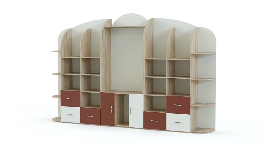 Стеллаж Астра 15 BMS станет практичным выбором для меблировки детских садов и развивающих центров. Горка с фигурной задней стенкой и просторной нишей под ТВ в центре оборудована множеством открытых полок, распашными шкафчиками и выдвижными ящиками для хранения книг, игрушек и учебных пособий, а по бокам располагаются торцевые полочки для мелочей. Яркий дизайн стеллажа обязательно понравится малышам, а надолго сохранить эстетичный вид помогут износостойкие материалы. Купить стеллаж Астра 15 BMS с выбором фурнитур и цвета по каталогу вы сможете в нашем интернет-магазине.