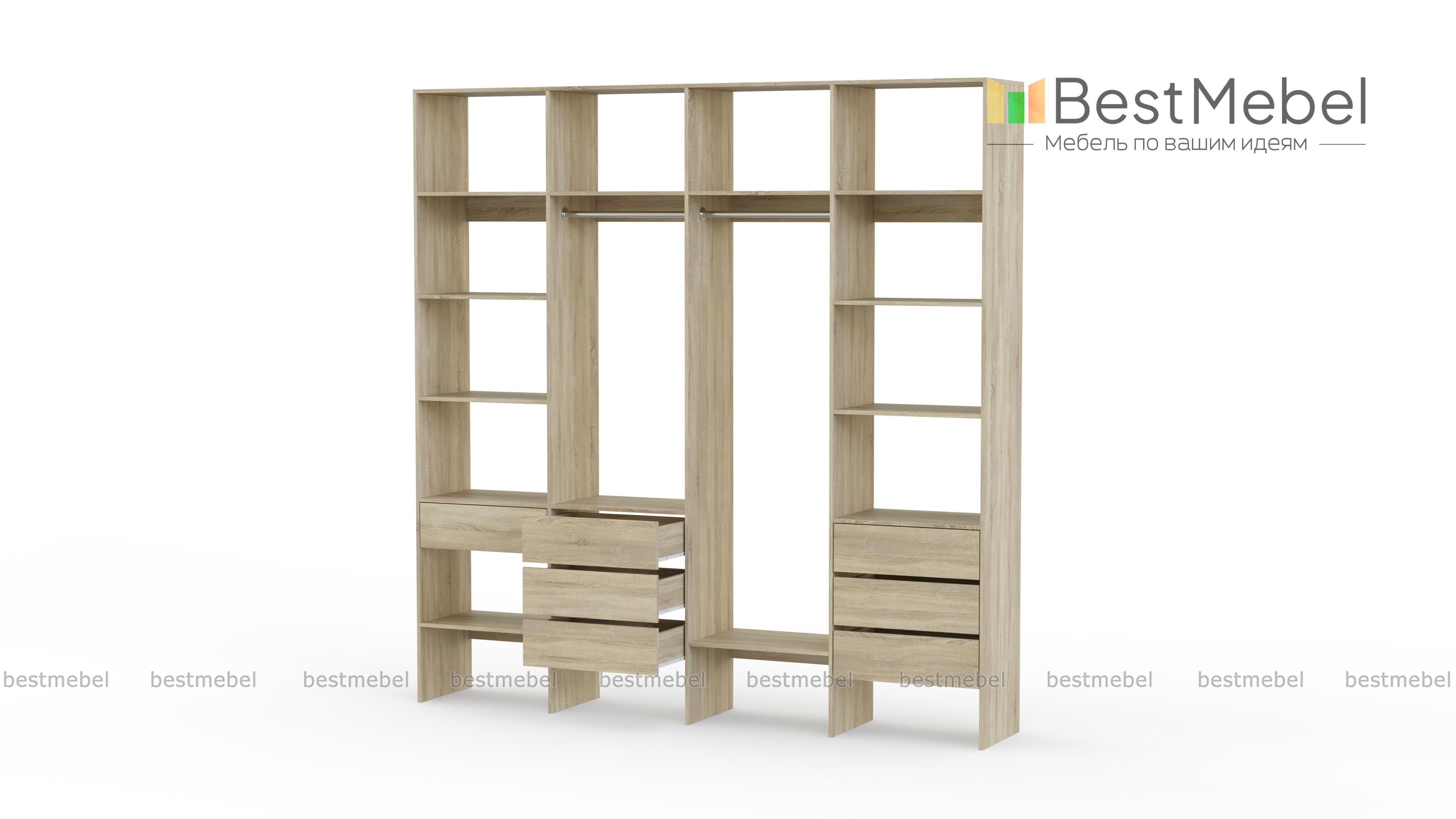 Стеллаж для одежды Мирта 67 BMS сделает пространство вашего дома легче и свободнее. Открытая конструкция объединила две штанги — под одежду разной длины, бельевые полки и удобную комбинацию выдвижных ящиков. Отсутствие декора и накладной фурнитуры в сочетании с базовым оттенком и простотой линий делает стеллаж по-настоящему универсальным. Купить стеллаж для одежды Мирта 67 BMS вы всегда сможете на сайте нашего интернет-магазина, по желанию изменив цвет и размеры.