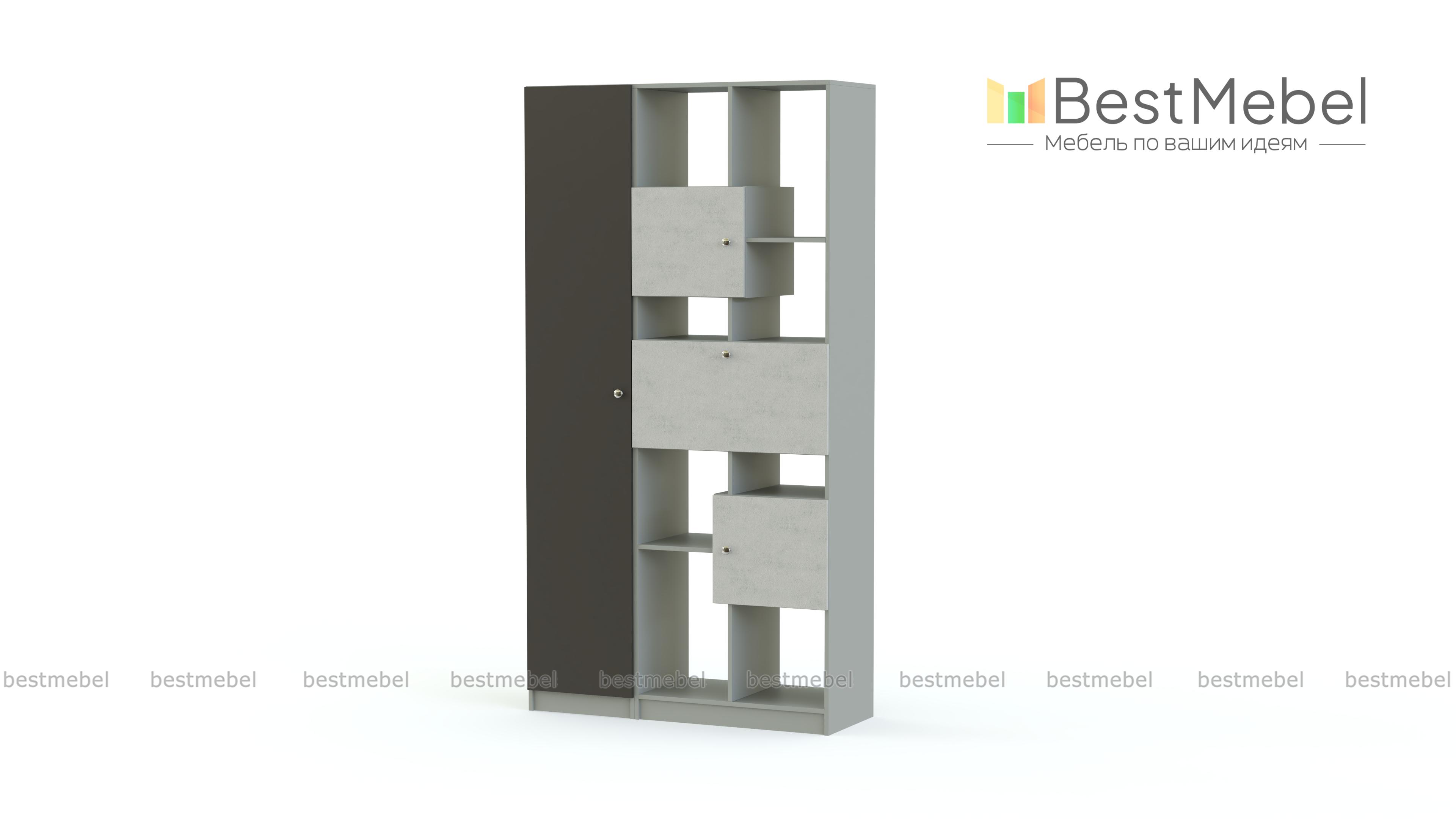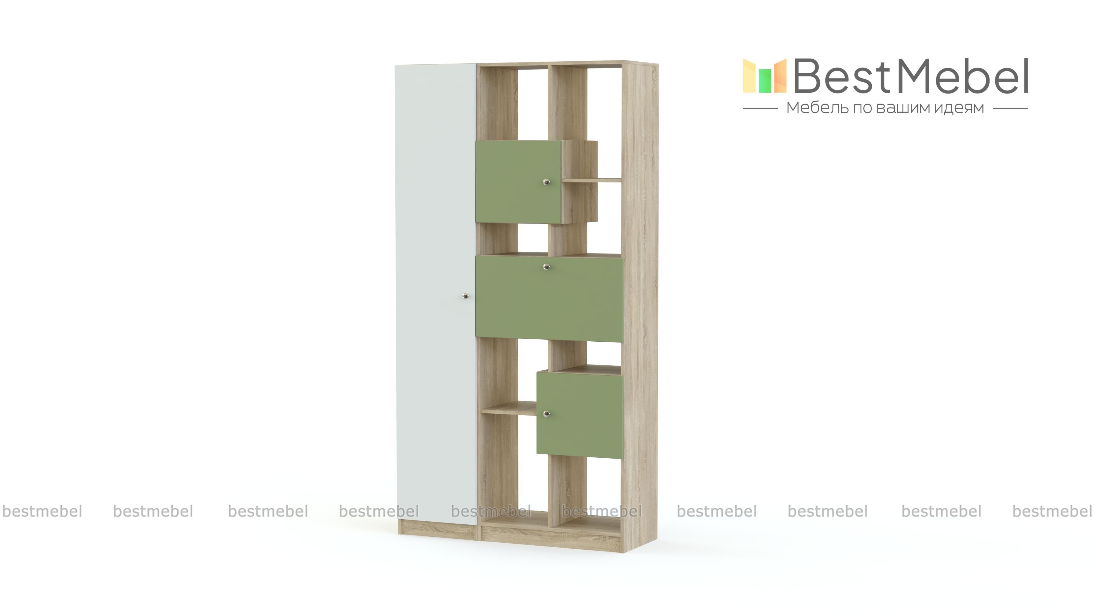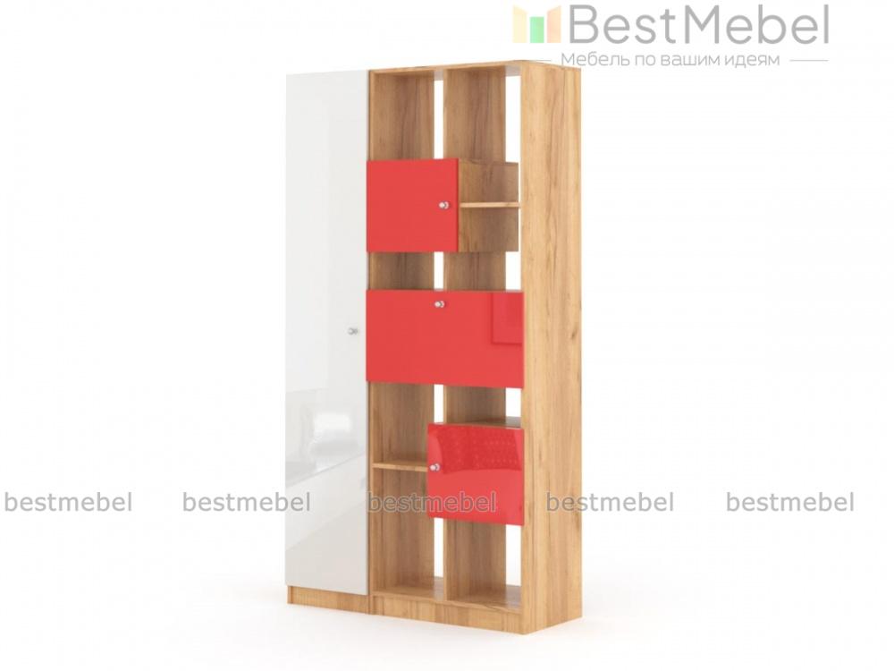 Стеллаж Флай 8 BMS скомбинирован с высоким бельевым пеналом и легко решит проблему хранения большого количества вещей – от одежды до мелочей. Стеллаж оборудован как открытыми секциями разной высоты для книг и декоративных предметов, так и глухими распашными отделениями. Сочетание корпуса древесных тонов с яркими матовыми фасадами выглядит актуально и отлично вписывается в интерьер современной городской квартиры. Купить стеллаж Флай 8 BMS приглашаем в наш интернет-магазин.