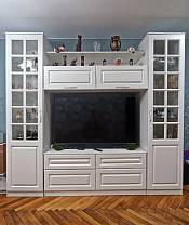 Гостиная модульная Ливерпуль BMS – классическая модель, эффектная и гармоничная. Респектабельный комплект включает в себя несколько практичных модулей - два высоких, симметрично расположенных шкафчика с витринными отделениями, тумбу под ТВ и антресольную секцию. Поклонники традиционных решений по достоинству оценят светлые рамочные фасады с имитацией крашеного массива, элегантный карниз и ручки под бронзу. Купить гостиную модульную Ливерпуль BMS по лучшей цене вы сможете в нашем интернет-магазине.
