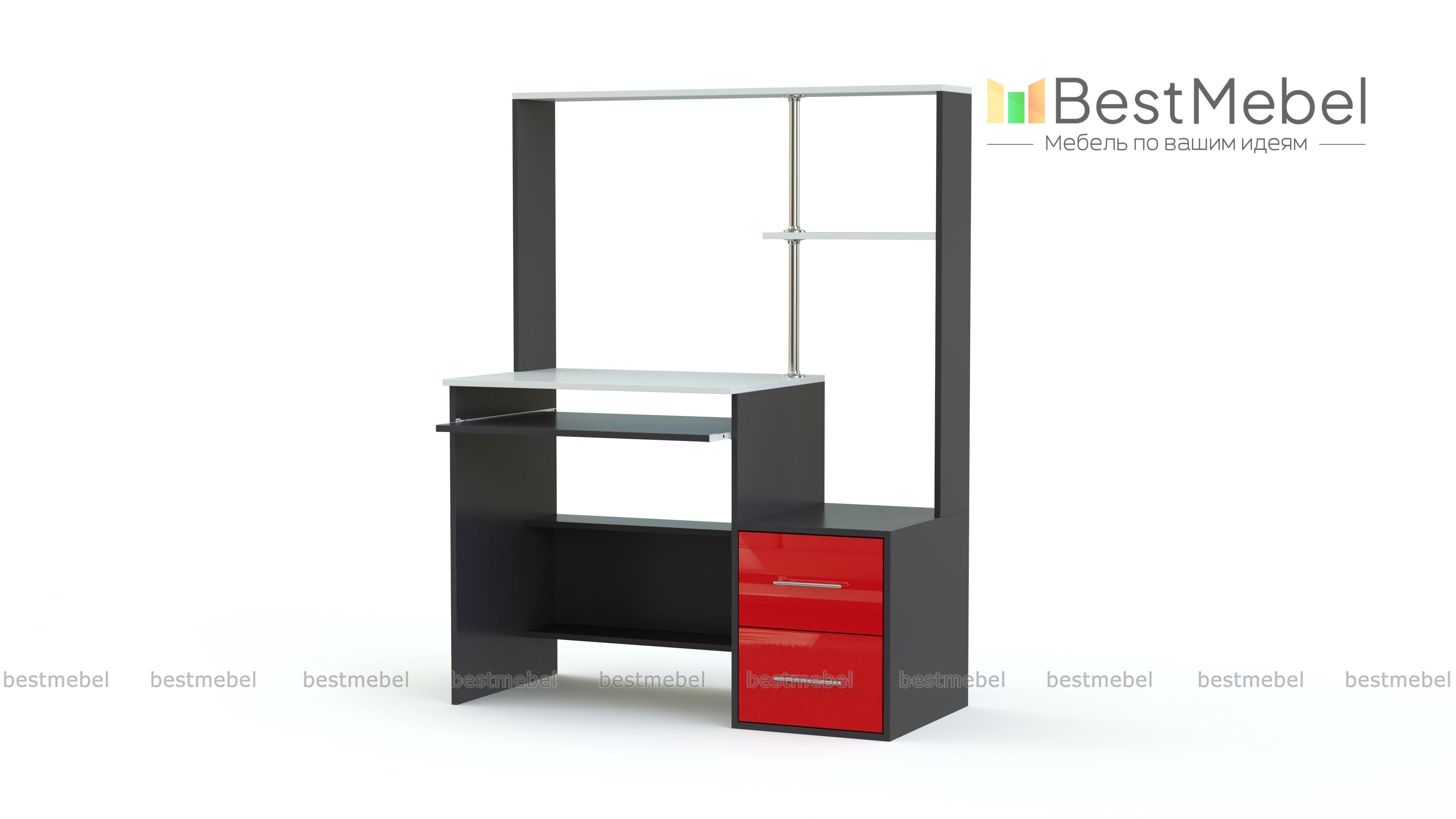 Заказ № 00000516487.Недавно сделал ремонт в комнате, решил купить компьютерный стол, которого не было. Долго выбирал альтернативу, но все не подходило, пока я не увидел стол МБ 46.1 BMS в интернет-магазине мебели «Bestmebelshop». Он меня устроил и по внешнему виду, и по размерам, и конструкции, а теперь делюсь впечатлениями и нюансами. Компьютерный стол МБ 46.1 BMS является хорошим вариантом для комнаты благодаря компактным размерам и яркому современному дизайну. Модель оборудована удобной для письма и работы за компьютером столешницей, выдвижной полкой для клавиатуры, тумбой с двумя ящиками, совмещенной с боковиной, и надстройкой на хромированной опоре. Есть возможность изменить размеры, цвет и другие параметры изделия.Почему выбрал. Во-первых, мне понравился внешний вид — смотрится стильно и классно. Во-вторых, выбрал нужную мне расцветку (белый глянец - фасад, остальные детали белые гладкие), другие варианты не подошли бы, поскольку вся мебель в комнате имеет именно такое исполнение. А так цветов много: венге, дуб молочный и др., так что мебель для компьютера можно подобрать практически для любого интерьера.В-третьих, мне нужен был длинный стол, изготовленный по индивидуальному заказу. Это решение позволило разместиться на моем столе все, что мне нужно было и вписаться столу в размер комнаты рядом с комодом.Сборка. Без опыта работы я сам собирать не решился, а доверил это дело специалисту, который собрал быстро и качественно.Обращаю ваше внимание на отсутствие отверстия для кабелей и розетки для стола которую можно было выбрать а параметрах стола дополнительно. Розетку для стола не заказал потому что это невозможно было сделать чисто технически из-за того что стол был заказан узкий (всего 40 см). Этот момент обсуждался со специалистами в процессе оформления заказа. Отверстие для кабелей сделал сам, так как не предусмотрел в заказе. Кроме того стол доработал сам, купил в Леруа Мерлен лист белого пластика, отпилил по размеру и сделал заднюю стенку в верхней части стола. Получилось то что надо, посмотрите на фото. Покупкой очень доволен. Благодарю за прочтение отзыва!