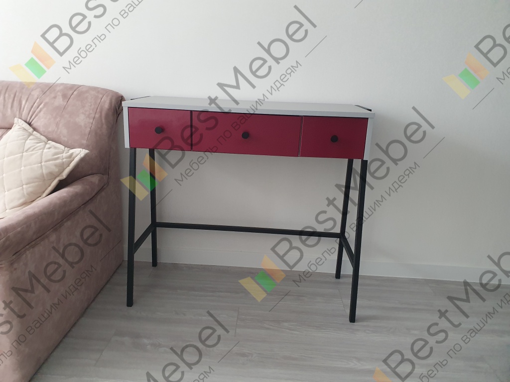 Консольный стол Хлоя 14 BMS лаконичен и прекрасно вписывается в интерьеры стиля минимализм, сканди или индастриал. Эффектная консоль, выполненная из ЛДСП в нейтральных цветах, располагается на легком металлическом каркасе с трапециевидными опорами. Широкая столешница и выдвижные ящики помогут разместить под рукой все необходимые уходовые средства и аксессуары, а также предметы декора. Купить консольный стол Хлоя 14 BMS с выбором цвета и размеров вы сможете в нашем интернет-магазине.