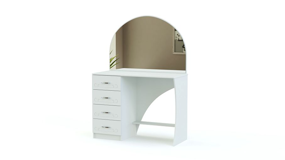 Стол туалетный Ланистер 18 BMS украсит интерьер спальни в классическом стиле и сделает уход за собой максимально комфортным. Изящная модель, выполненная в универсальном светлом оттенке, декорирована по фасаду легкой фрезеровкой. Столик оборудован тумбой с четырьмя выдвижными ящиками для хранения мелочей, нижней полкой, просторной столешницей и большим скругленным зеркалом. Купить стол туалетный Ланистер 18 BMS по лучшей цене вы сможете в нашем интернет-магазине.