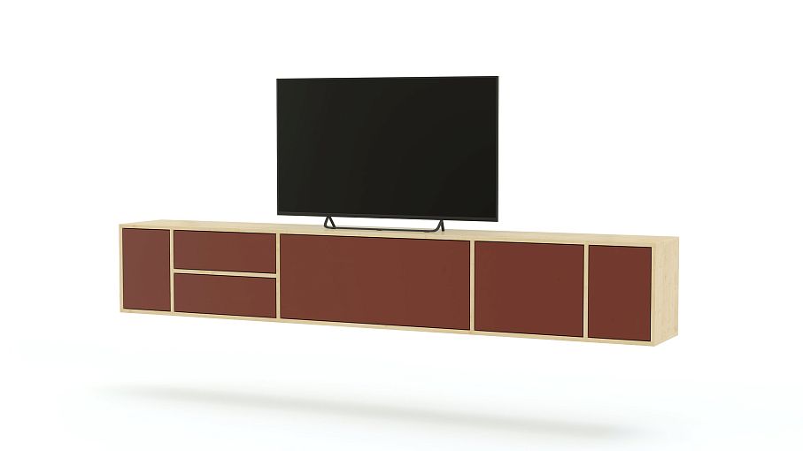 Тумба под ТВ подвесная Лори № 16 BMS максимально лаконична по форме, а в яркий интерьерный акцент превращает модель исполнение в терракотовом оттенке. Смелое решение для современной гостиной сделает телевизор частью дизайна и позволит разместить в ТВ-зоне декоративные предметы, книги и множество бытовых мелочей. Широкая подвесная тумба оборудована просторной столешницей, распашными отделениями и ящиками. Купить тумбу под ТВ подвесную Лори № 16 BMS по выгодной цене приглашаем к нам в интернет-магазин.