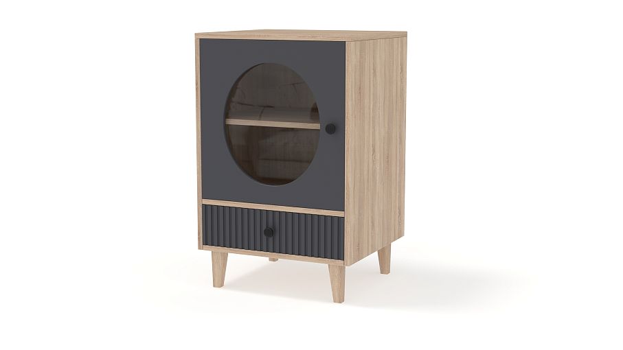 Тумба прикроватная Брукс 2 BMS займет одно из центральных мест в интерьере и организует хранение необходимых для сна мелочей. Конструкция с высокими ножками включает в себя распашное отделение с круглым вырезом на дверце и стеклом и выдвижной ящик. Красивый контраст создают теплый естественный оттенок корпуса и темный фасад с рельефом. Купить тумбу прикроватную Брукс 2 BMS вы всегда сможете в нашем интернет-магазине, подобрав размеры и подходящую цветовую гамму.