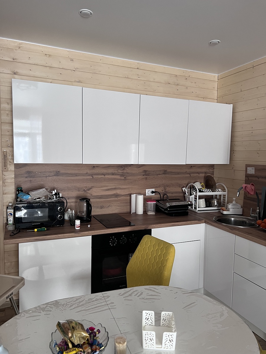 Собрали комод, который сами для себя придумали на основе имеющихся образцов с 9-ю выдвижными ящиками. Фасады с фрезеровкой выполнены и подогнаны очень хорошо. Рисунок был сложный, но все совпало и получилось очень красиво. Отдельное спасибо за нижнюю планку фасада на цоколь- получился единый рисунок и современный внешний вид. Есть замечания по глубине ящиков, т.к. в собранном виде ящики не доходят до задней стенке на 6 см. Как-то этот момент не согласовали. Думаю, сто можно было на 5 см точно увеличить глубину ящиков, что было бы функциональнее, т.к. комод это не только фасад, но и шкаф для вещей, постельного белья и Эти 5см я учитывала при выборе размера комода. Если проблема в фурнитуре, то можно было это обсудить. А так, нам теперь с этим жить. Ещё сборка тоже в некоторых местах не продумана ( центральные внутренние отверстия под симметричные направляющие почему-то одно сквозное. Получается, что направляющие с одной стороны прикрутили, а потом с другой стороны центральной стойки в те же отверстия нужно прикручивать с другой стороны направляющие. Шурупы ломаются друг о друга и конструкция кривая. Пришлось подгонять самим. Не хватило 2-х больших шурупов для сборки корпуса. Думаю, что лучше больше класть, чем меньше. Это уже 2-й наш большой заказ. В любом случае большое спасибо, что Вы воплощает наши мечты! Отдельное огромное спасибо инженеру-конструктору и мастеру по внешнему виду фрезеровки. Получилось ОГОНЬ!