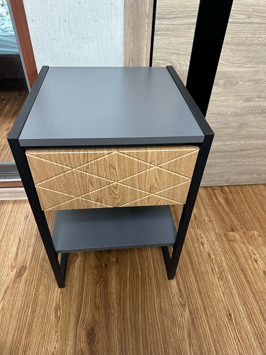 Давно искал тумбу похожего дизайна в нужной мне цветовой гамме и размерах, и в интернете ничего адекватного было не найти. Снова на помощь пришла BestMebel, выполнив мои пожелания и приняла дополнение заказа по телефону.У конструкции тумбочки есть и минус. С прикрученной как ее тут назвали "Задняя панель1" невозможно вытащить/засунуть ящик, так как задняя часть ящика не может зайти на направляющие под углом, мешают полсантиметра высоты этой детали. Для этого пришлось уже после сборки разбирать перед ящика, откручивать крышку, засовывать ящик, прикручивать обратно крышку и уже потом снова собирать перед ящика.
