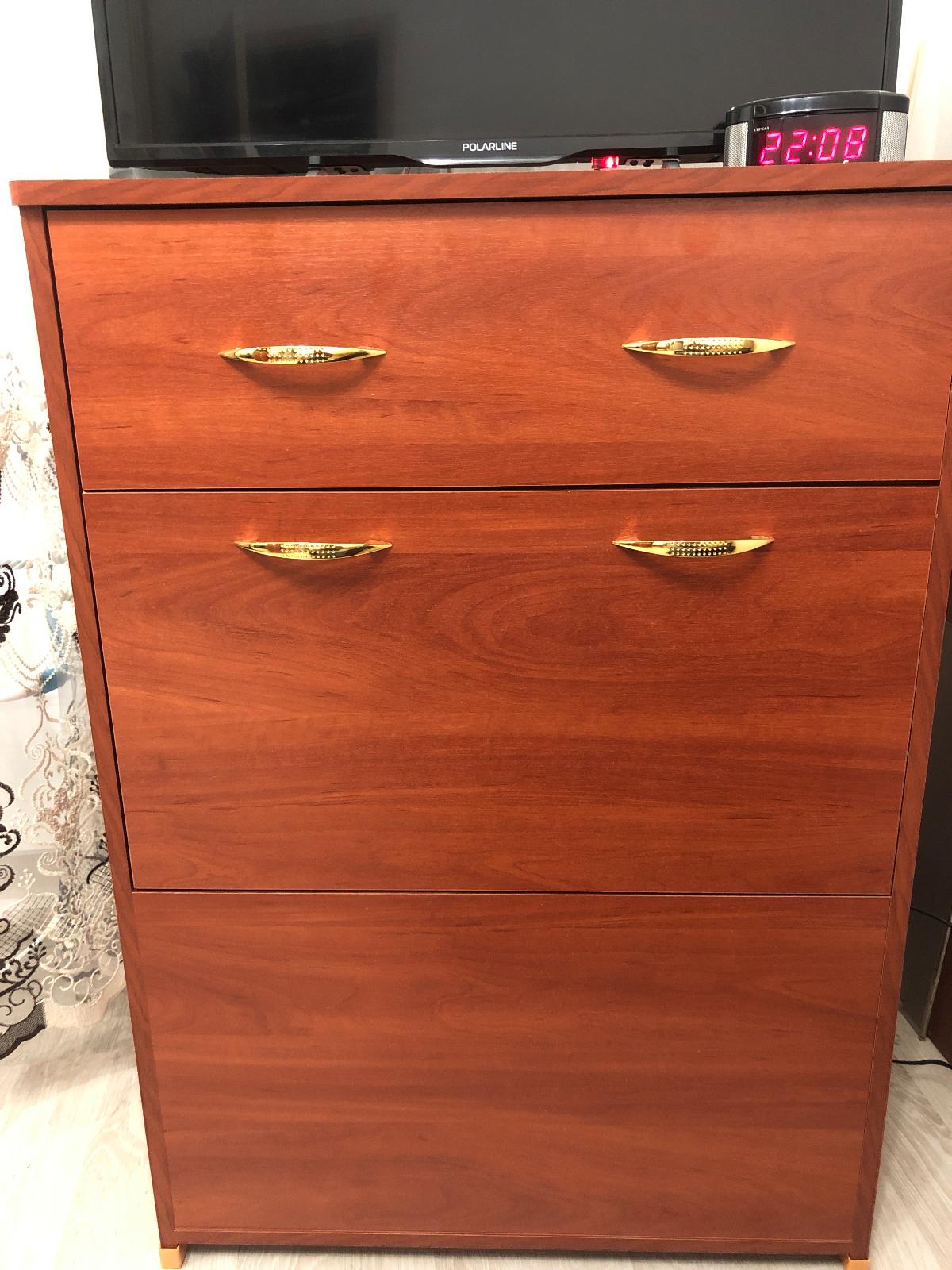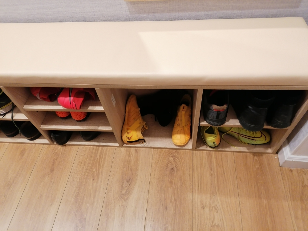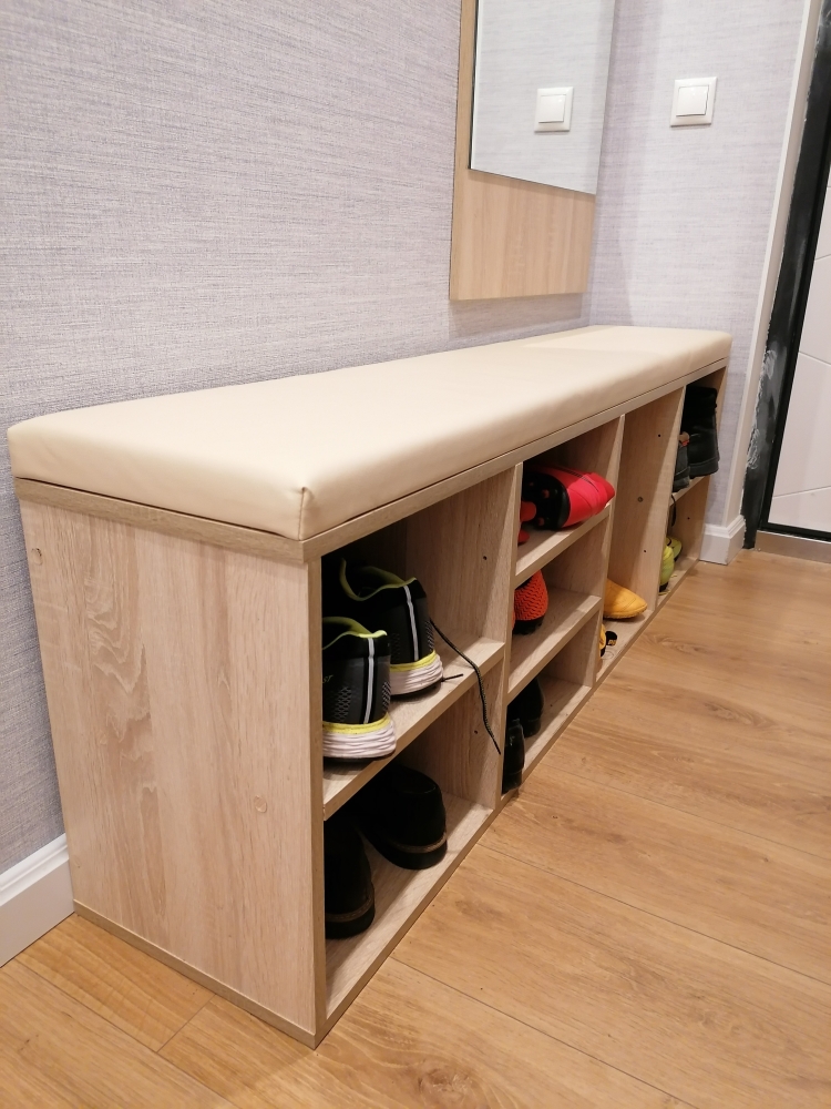 Обувница Джун 2 BMS индивидуальные размеры. Понравилось то, что есть возможность изменения размеров изделия за символическую плату, много расцветок на выбор. Прежде чем запустить производство, менеддеры несколько раз уточняли, все ли верно. Небольшое недоразумение было с доставкой, не знаю, повый год ли в этом виноват, т. К. Привезли чуть ли не 31,или там всегда так, но я сразу понимала, что врядли за 2 дня мне изготовят индивидуальную обувницу. Все довольно оперативно.Цвет немного другой, нежели картинка на сайте, но обычно о таком предупреждают. Курьер был вежливый и мы легко нашли компромис, так как из-за НГ были наклалки по времени. В целом я довольна работой всех служб.