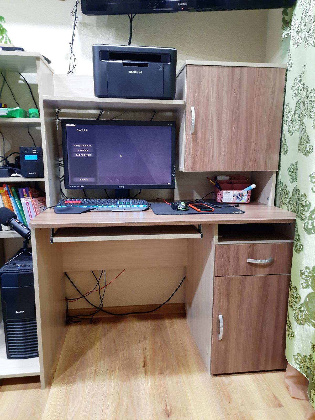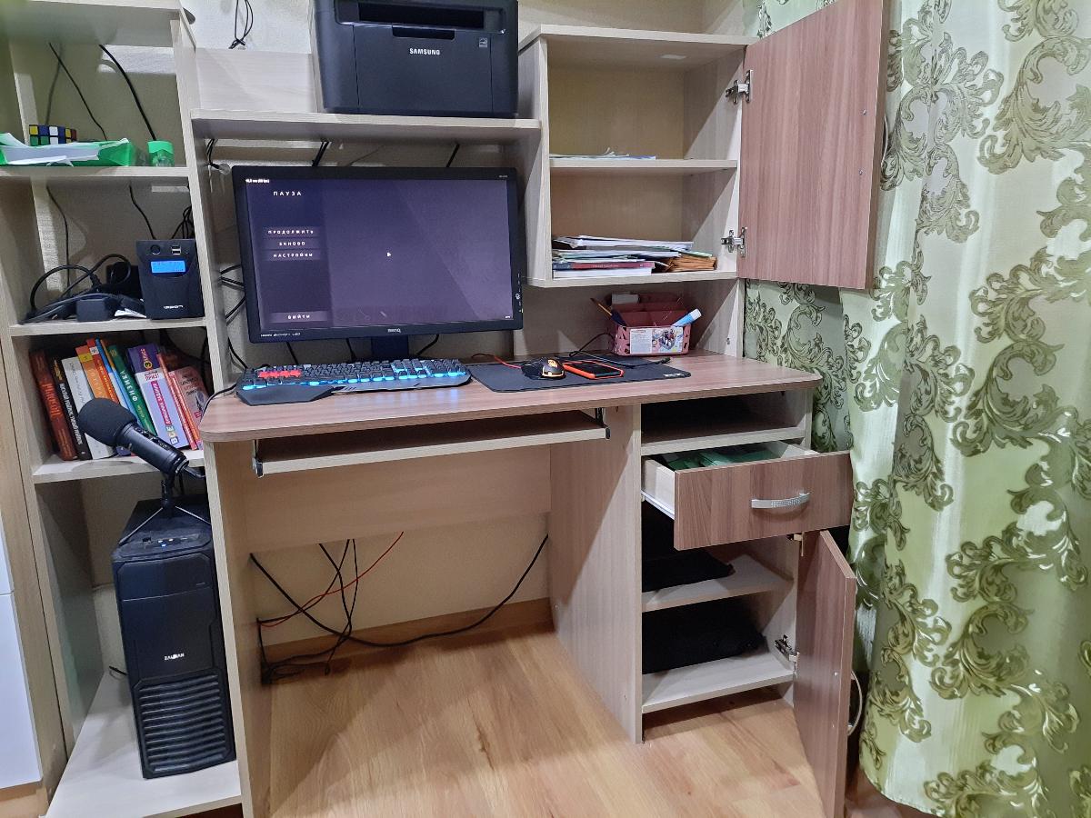 Стол очень понравился. Вписался в интерьер команты и смотрится гармонично. Очень много полок и шкафчиков. Места достаточно. Советую к покупке Заказ 00000554557, изделие Компьютерный стол Сокол КСТ-11.1 BMS (1490х1440х600)