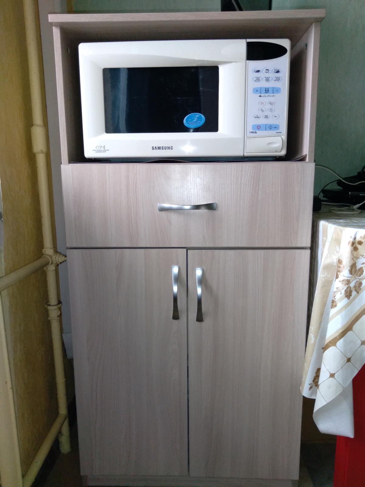 Тумба 60х60, ниша высота 30. Цвет ясень шимо светлый. Ручки вроде металл, надеюсь, не будут отрываться, как пластиковые. Единственное, одна дверца чуть ниже получилась, не знаю, как ее подтянуть, похоже, так были отверстия просверлены под петли. Дно выдвижного ящика хлипковатое - фанерка, такая же, как по задней стенке. В целом довольны.