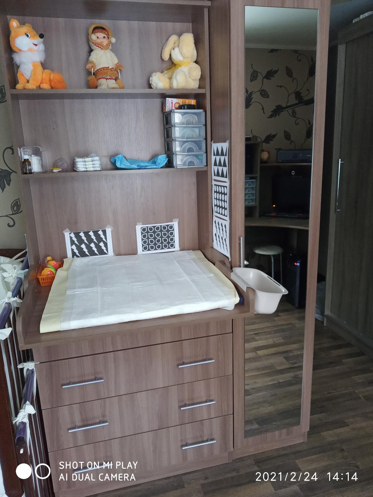 Покупала камод-пелинатор для ребенка. Осталась очень довольна. Делали мы его под индивидуальные размеры (800х2000х450) и в него с легкостью поместилось все, что нужно ежедневно для ухода за ребенком.