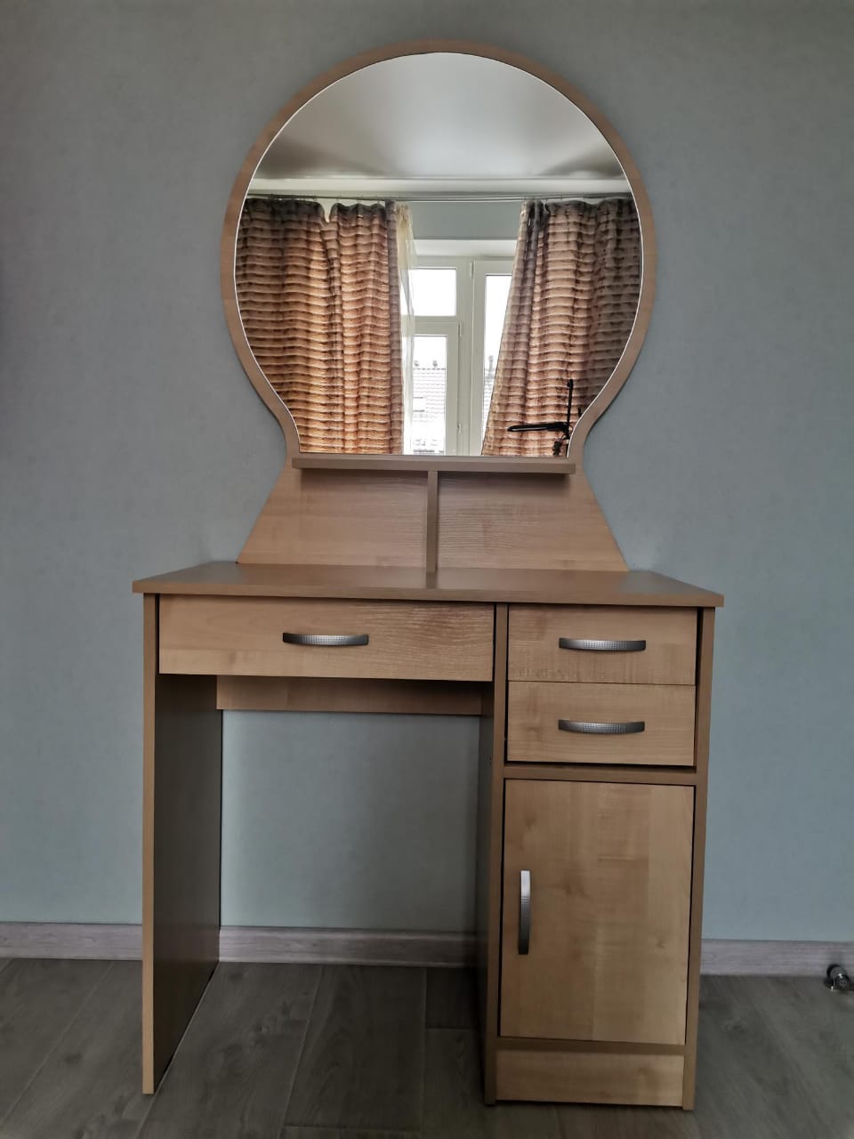 Очень качественный и красивый туалетный столик. Пришёл достаточно быстро, без повреждений и царапин на стекле. Есть широкий выбор цветовых грамм. На сегодняшний день лучший сайт, на котором можно заказать мебель на любой вкус.