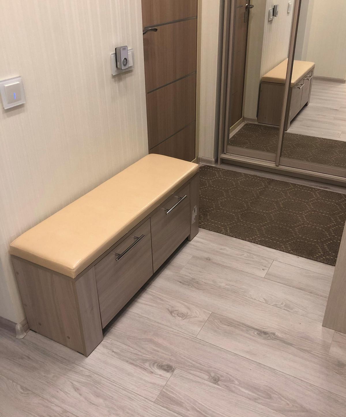 Заказ 00000355246 от 10.02.2020 .Очень удобная тумба-обувница- можно и присесть когда обуваешься, и верхние вещи положить когда много народу. Материалы дерева хорошего качества, сиденье мы брали ткань экокожа- приятная на ощупь , мягкая но а то же время плотная и не трескается. Сайт удобен тем что можно мебель выбрать по своим параметрам . Тумбу мы выбирали по своим размерам .