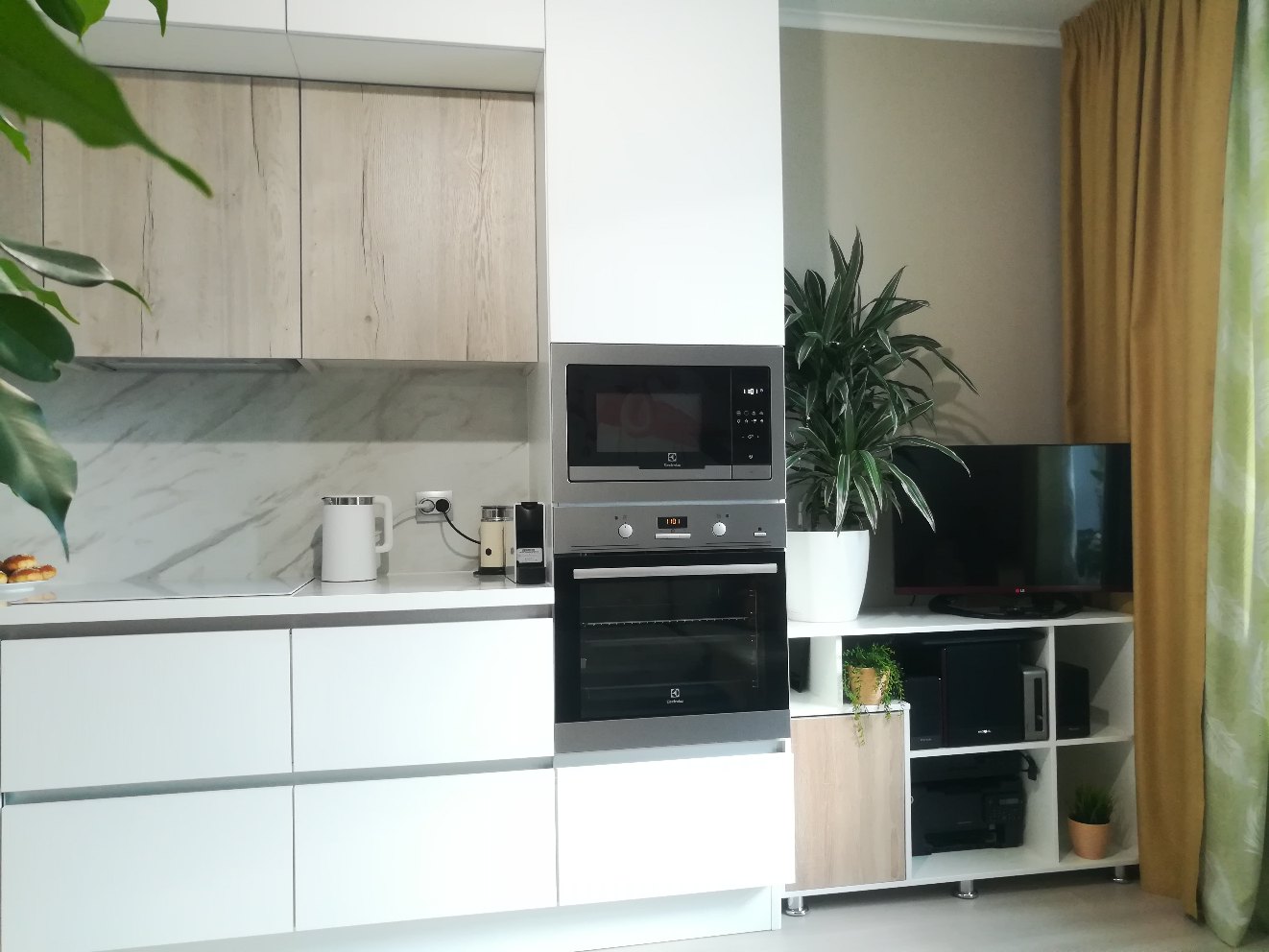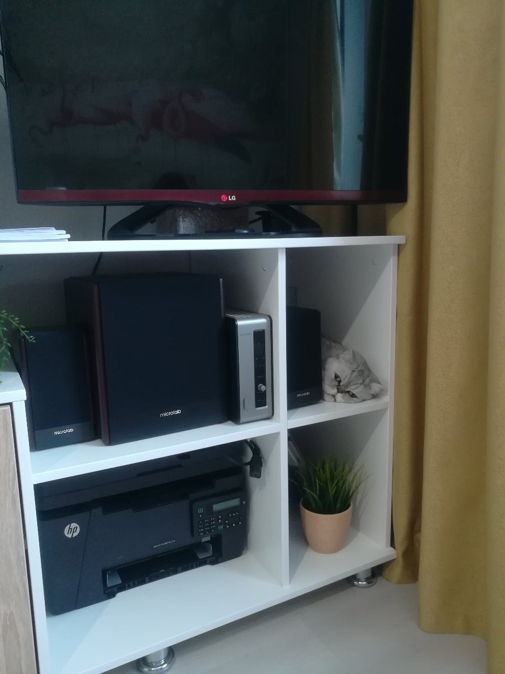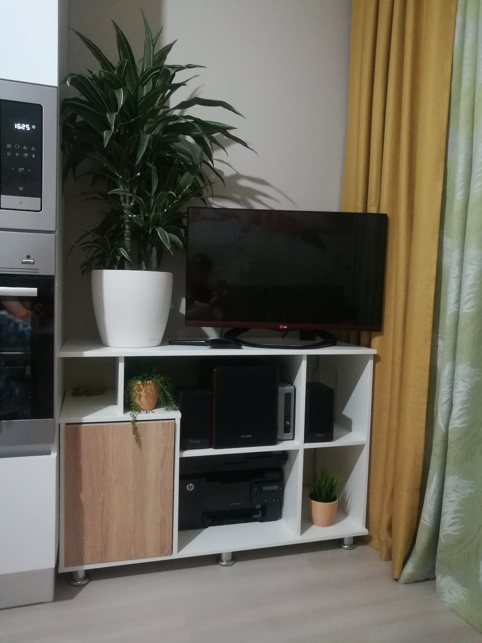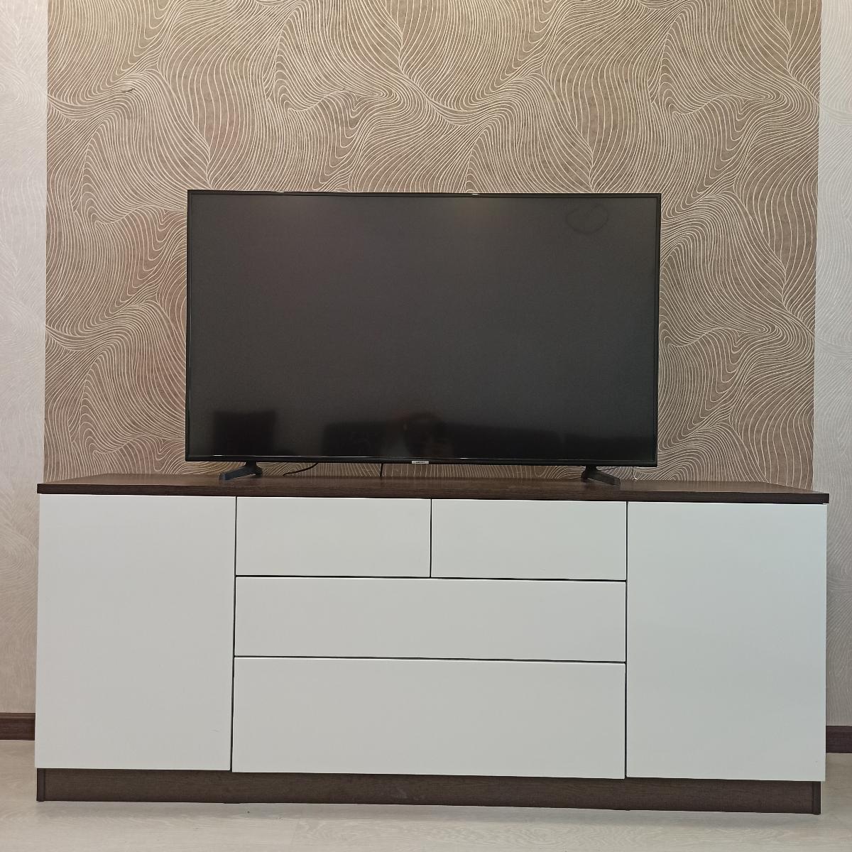 Искали тумбу под тв на кухню. Было много требований: чтобы подошла по размеру в длину и ширину и хотелось конкретную высоту для удобства просмотра тв, чтобы подходила к кухонному гарнитуру, чтобы было много полок для колонок и сабвуфера, а также закрытый шкафчик для всяких инструкций и др.мелочей без ручек. Ничего подобного в готовом виде не нашли, или было слишком дорого. Узнали, что сделать на заказ в нужном размере, цвете и материале - выходит не заоблачная цена. Рискнули заказать и не прогадали. Сработали быстро и качественно. Остались довольны, пользуемся, очень удобно. Пока никаких нареканий к качеству. И даже кот облюбовал себе полочку и прекрасно проводит там время.
