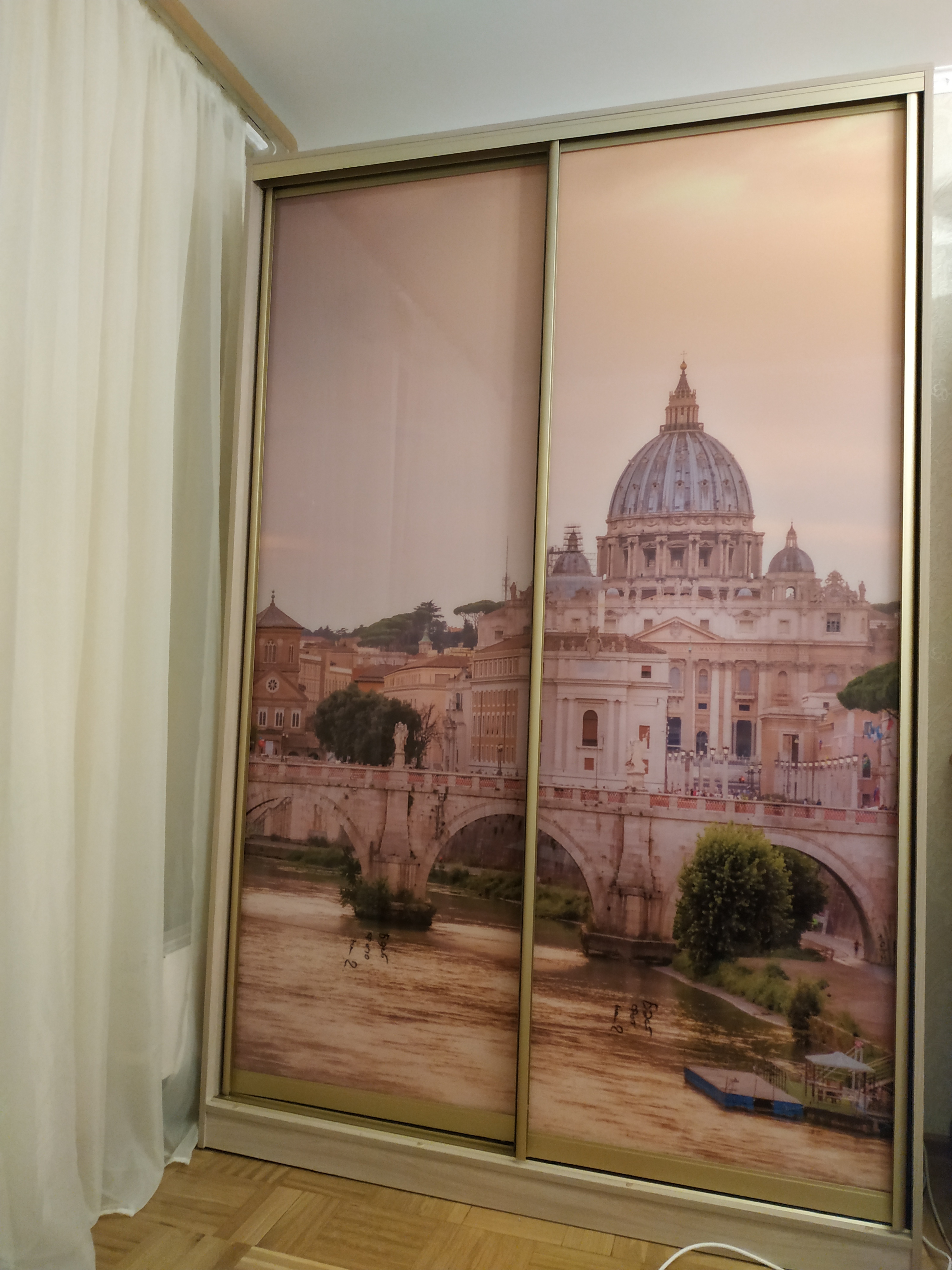Заказали шкаф с фотопечатью, очень красиво получилось! Фото выбирали сами с сайта который посоветовал менеджер. Размер стандарт, уменьшили глубину.