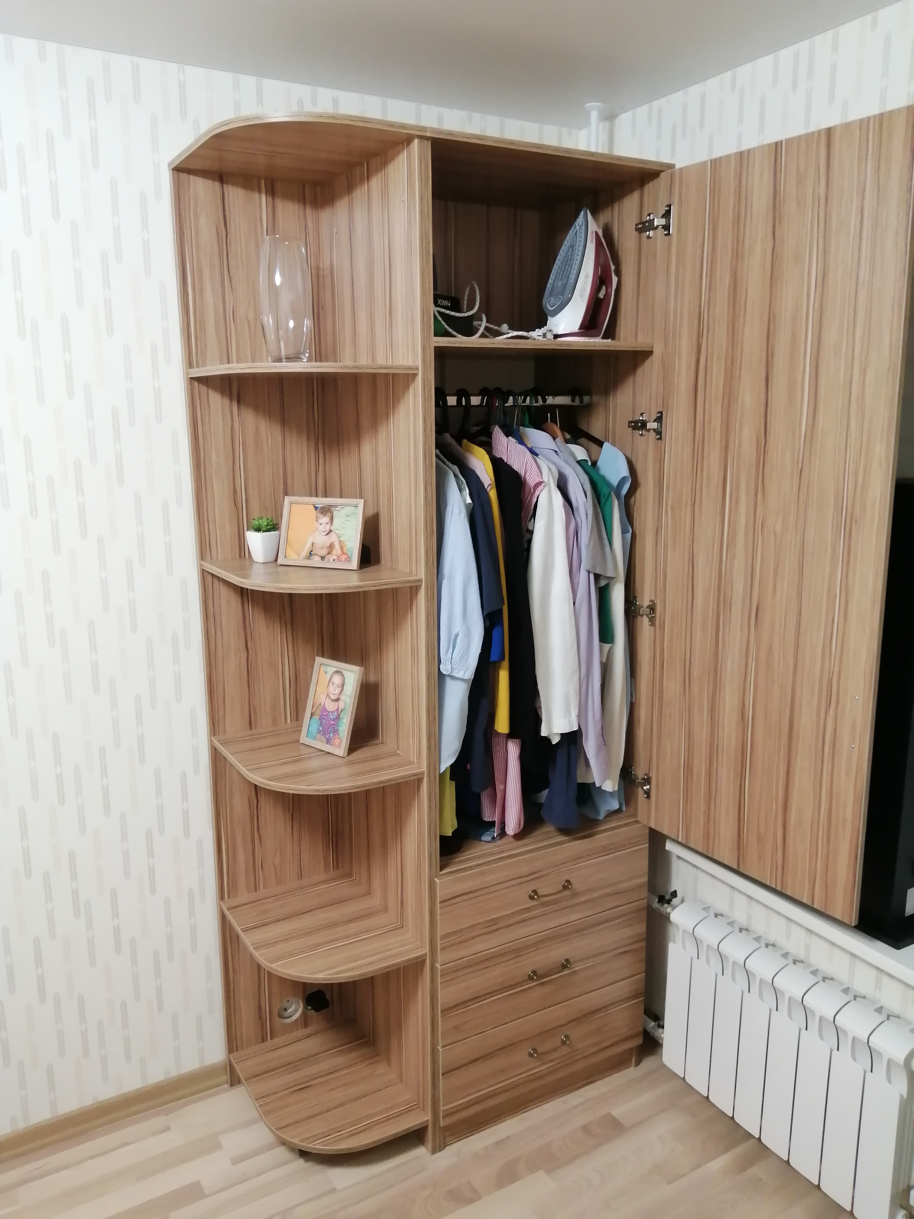 Отличный шкаф за такие деньги, очень понравилось, что можно выбрать свои размеры, идеально совпал с тем что хотели! не смотря на размер, оказался очень вместительным!